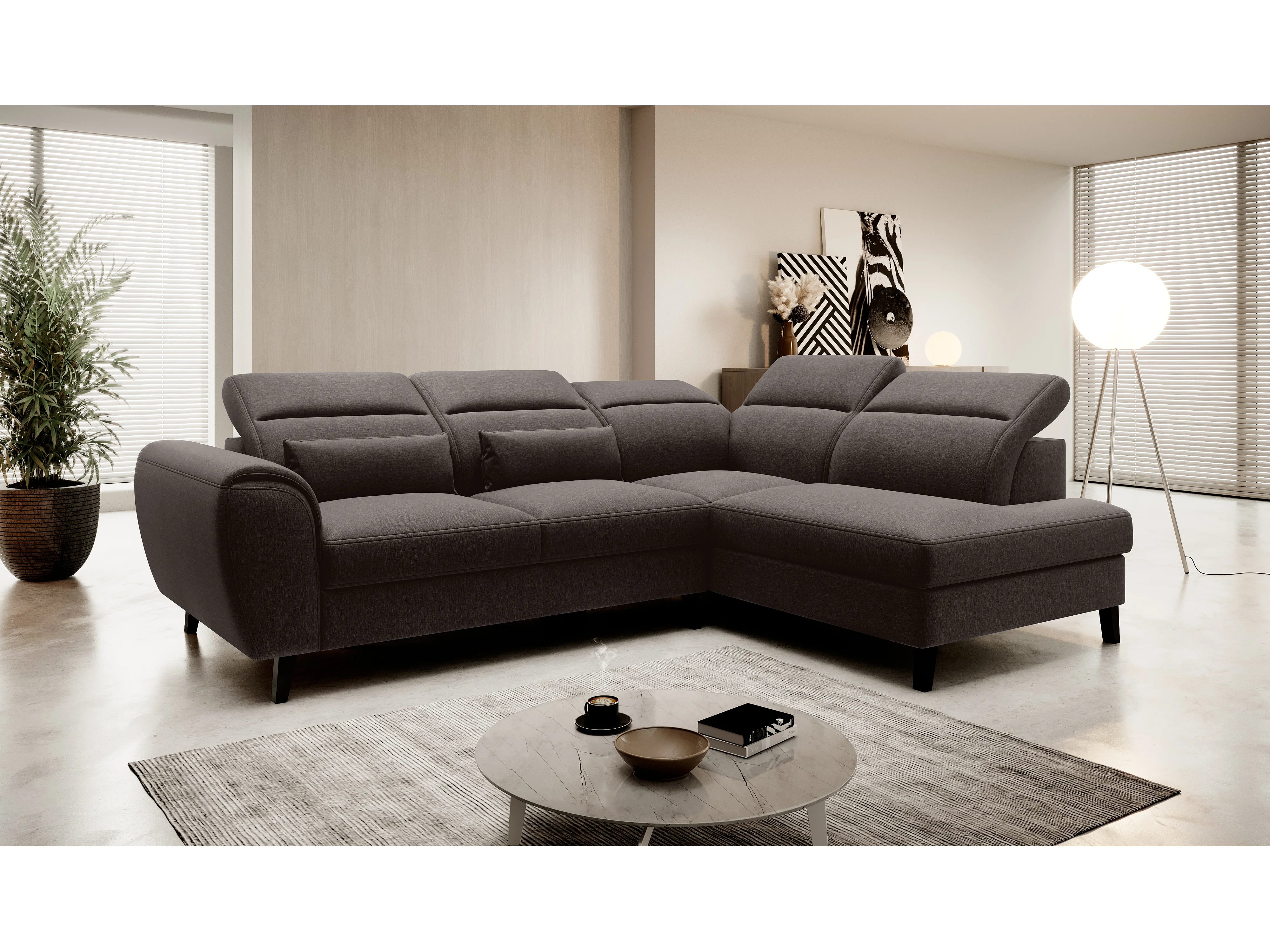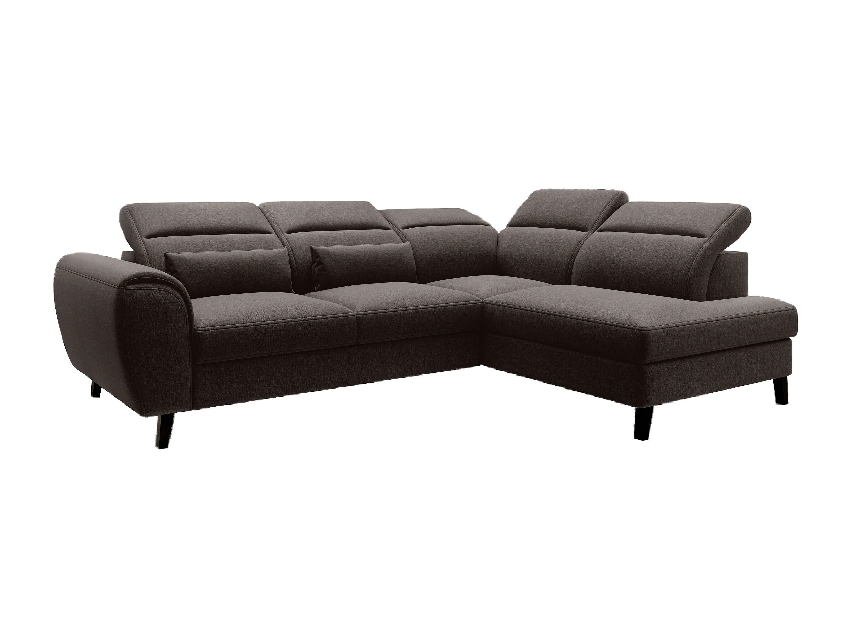 Canapé d'angle convertible avec rangement tissu NOBLESSE - Pieds bois noir-Marron foncé-angle droit