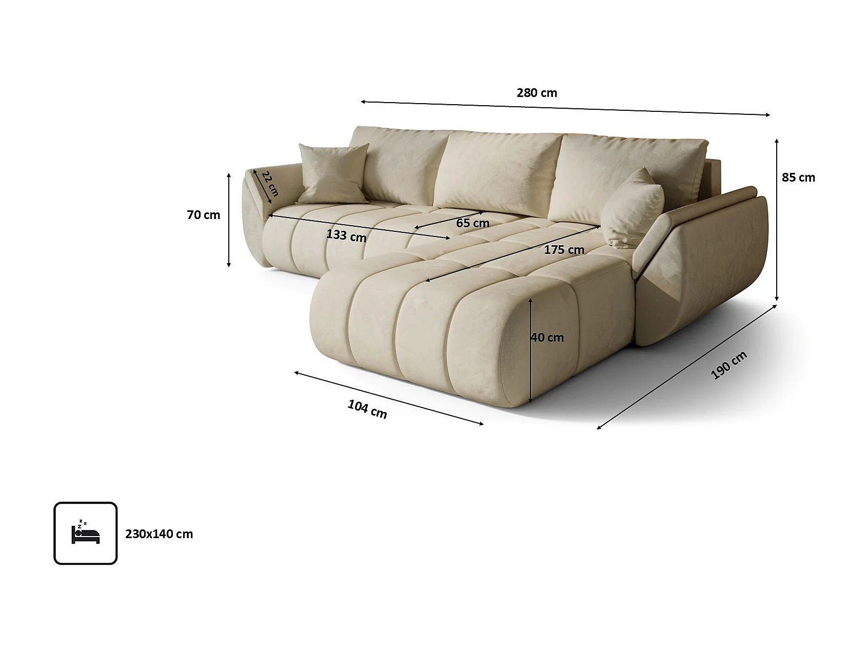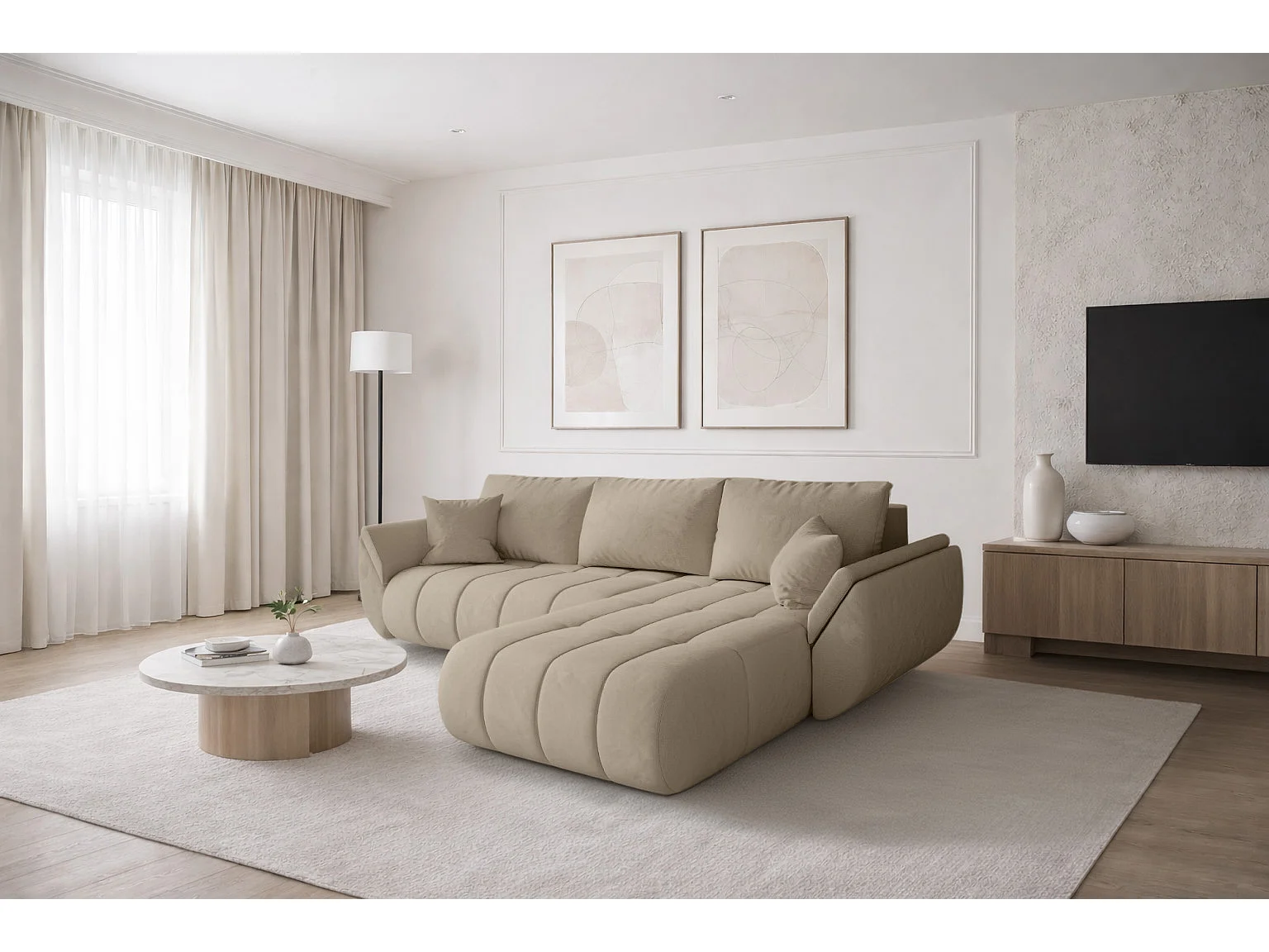 Canapé d'angle convertible avec rangement TOKYO PREMIUM, tissu MONOLITH, écru, côté droit