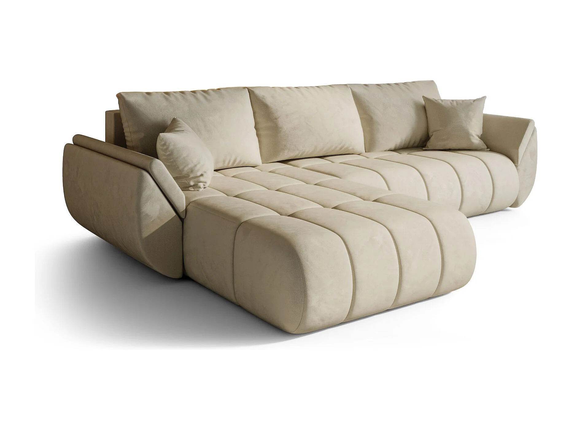 Canapé d'angle convertible avec rangement TOKYO PREMIUM, tissu MONOLITH, écru, gauche
