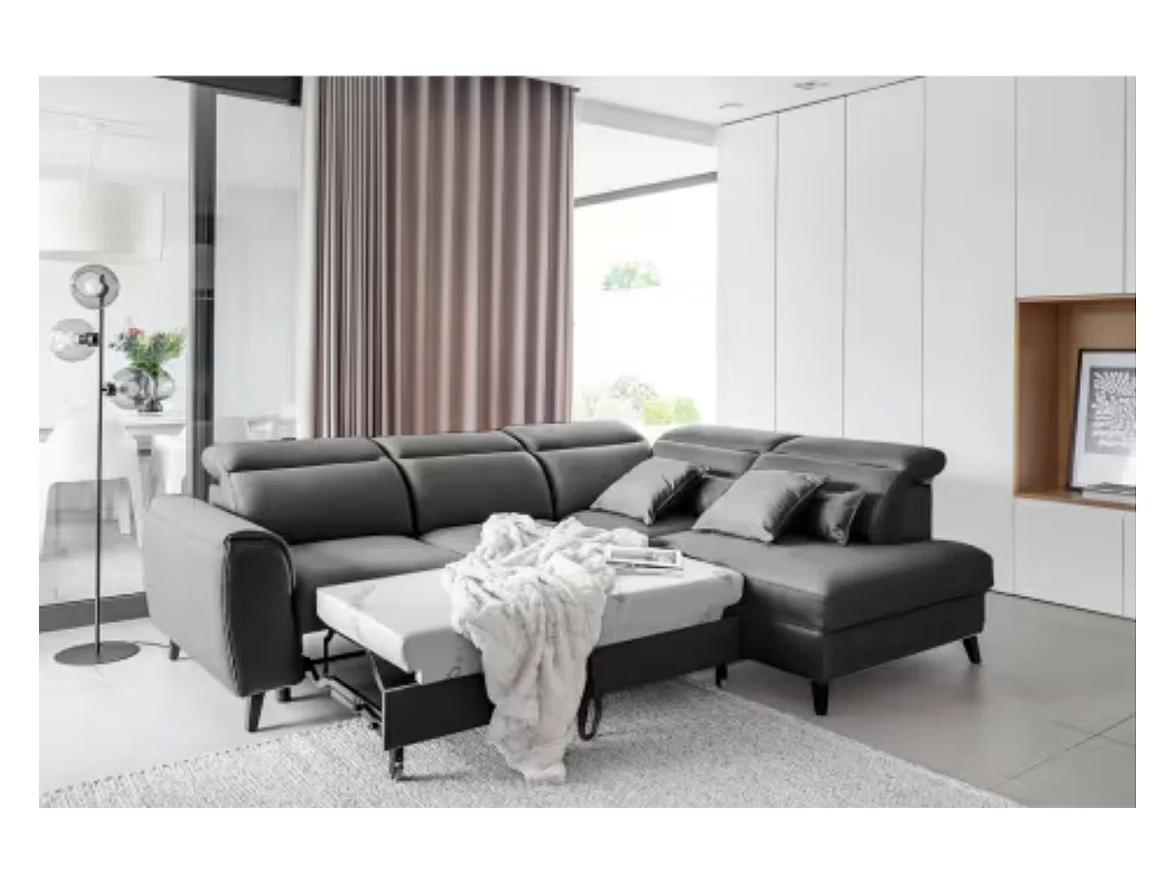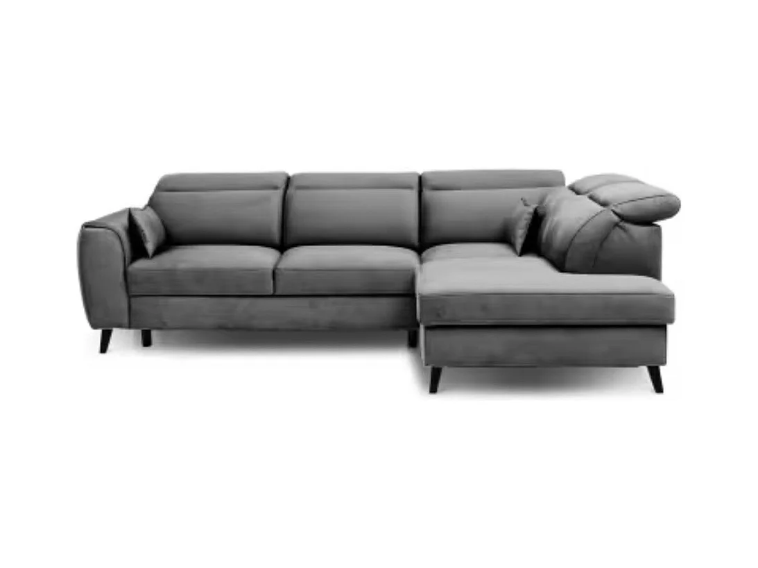 Canapé d'angle convertible velours appuis-tête réglables ASTORIA - Coffre et pieds bois noir-Gris foncé-angle gauche