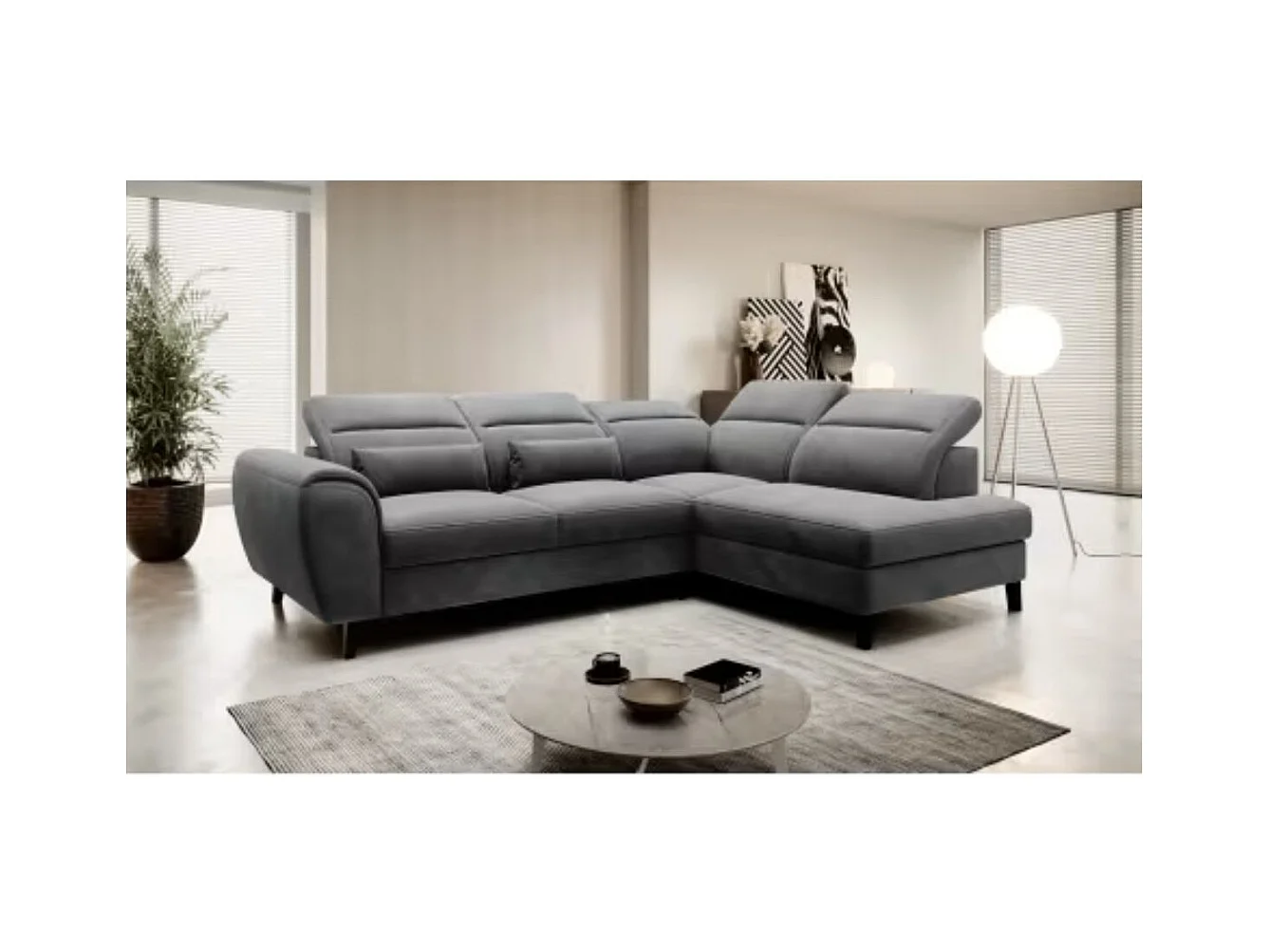 Canapé d'angle convertible avec rangement en velours Majesté-Gris-angle gauche