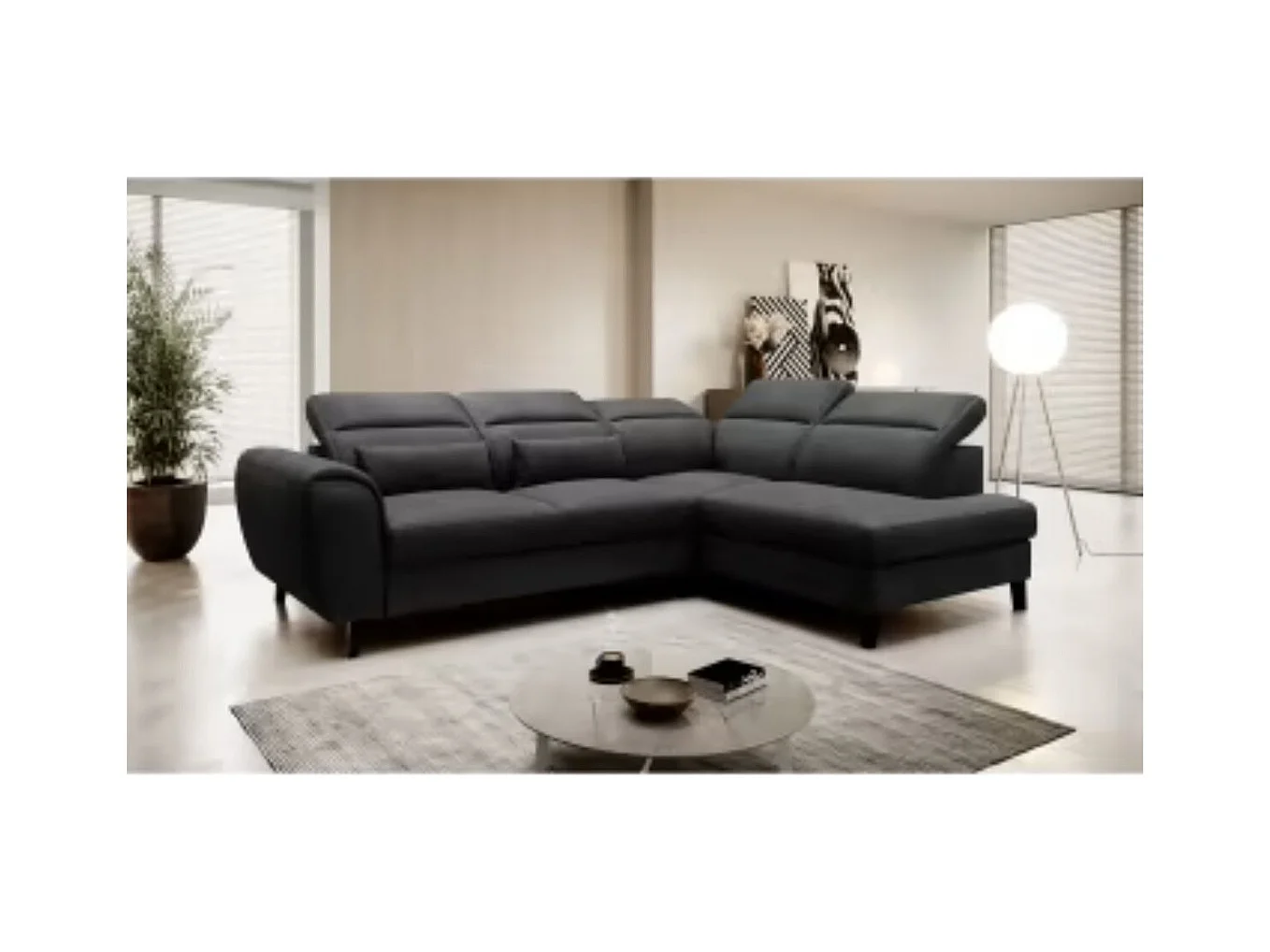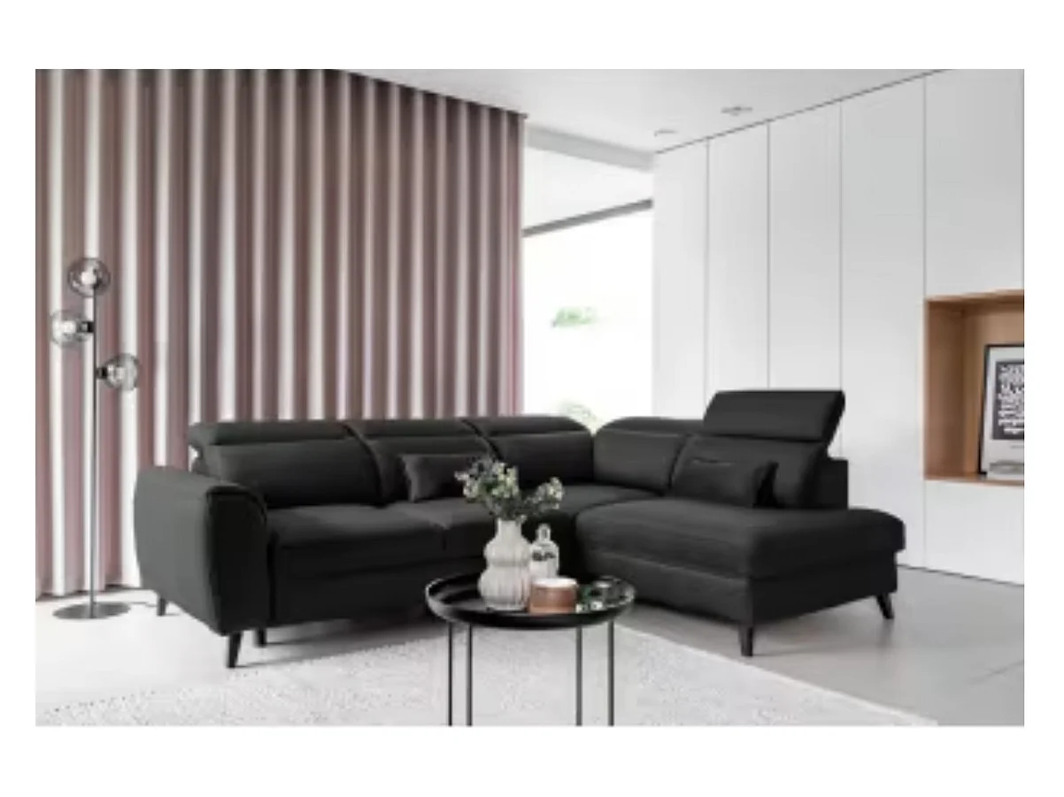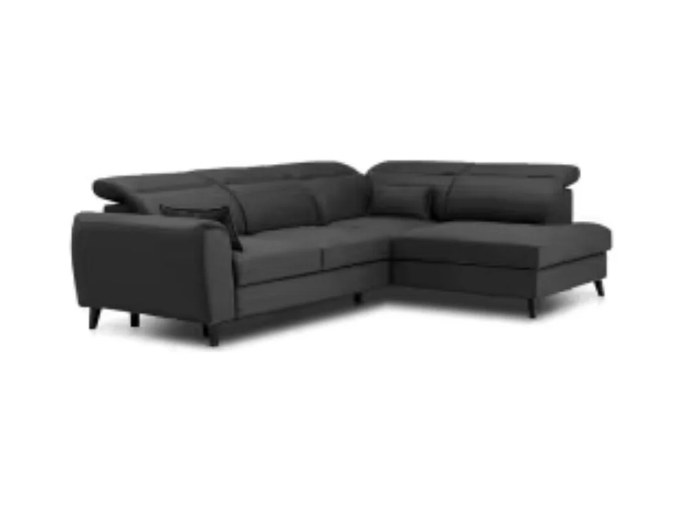 Canapé d'angle convertible avec rangement velours NOBLESSE - Pieds bois noir-Gris anthracite-angle droit