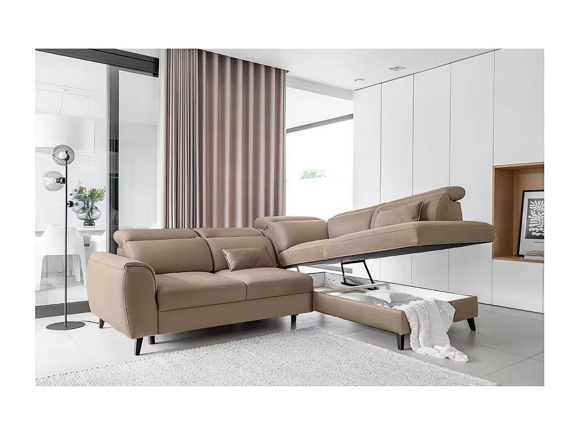 Canapé d'angle convertible avec rangement velours NOBLESSE - Pieds bois noir-Marron-angle droit