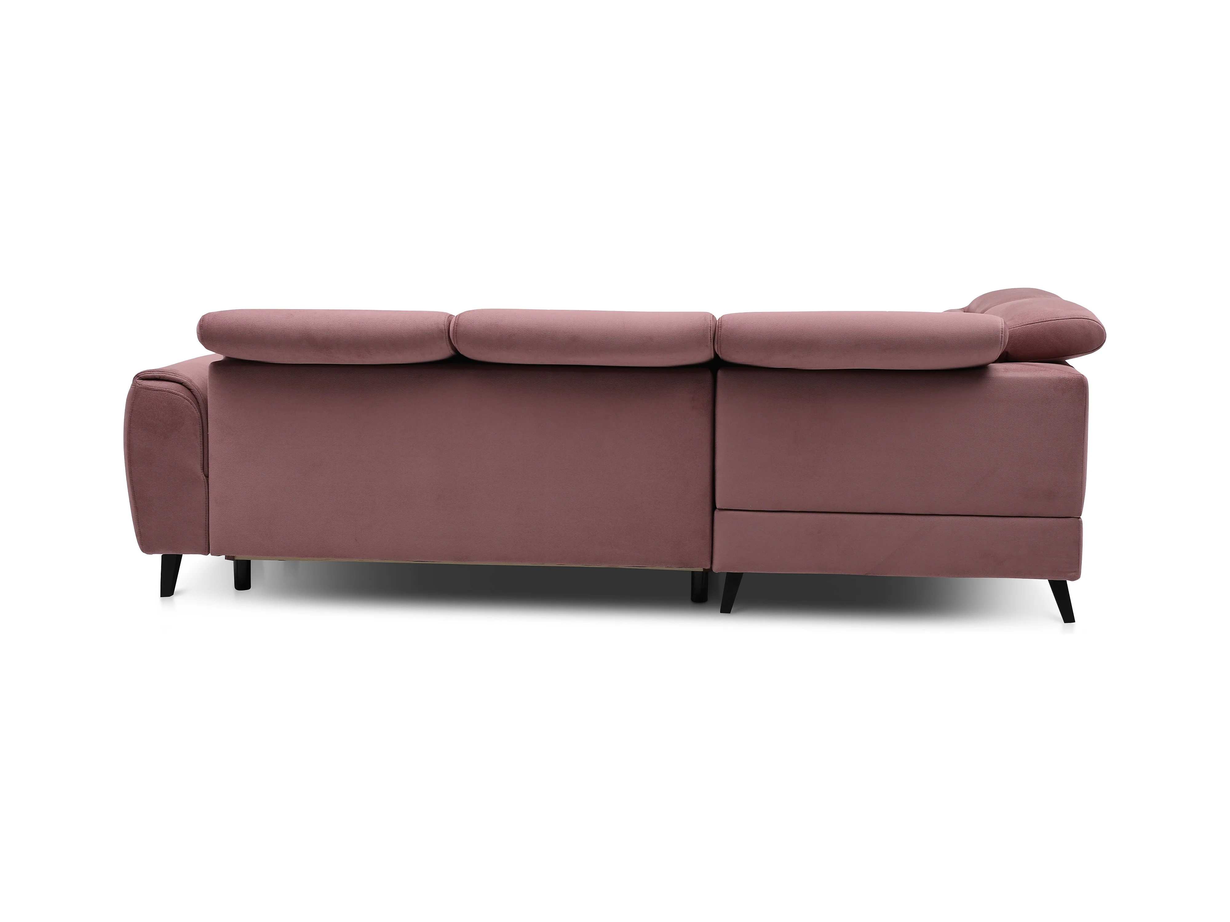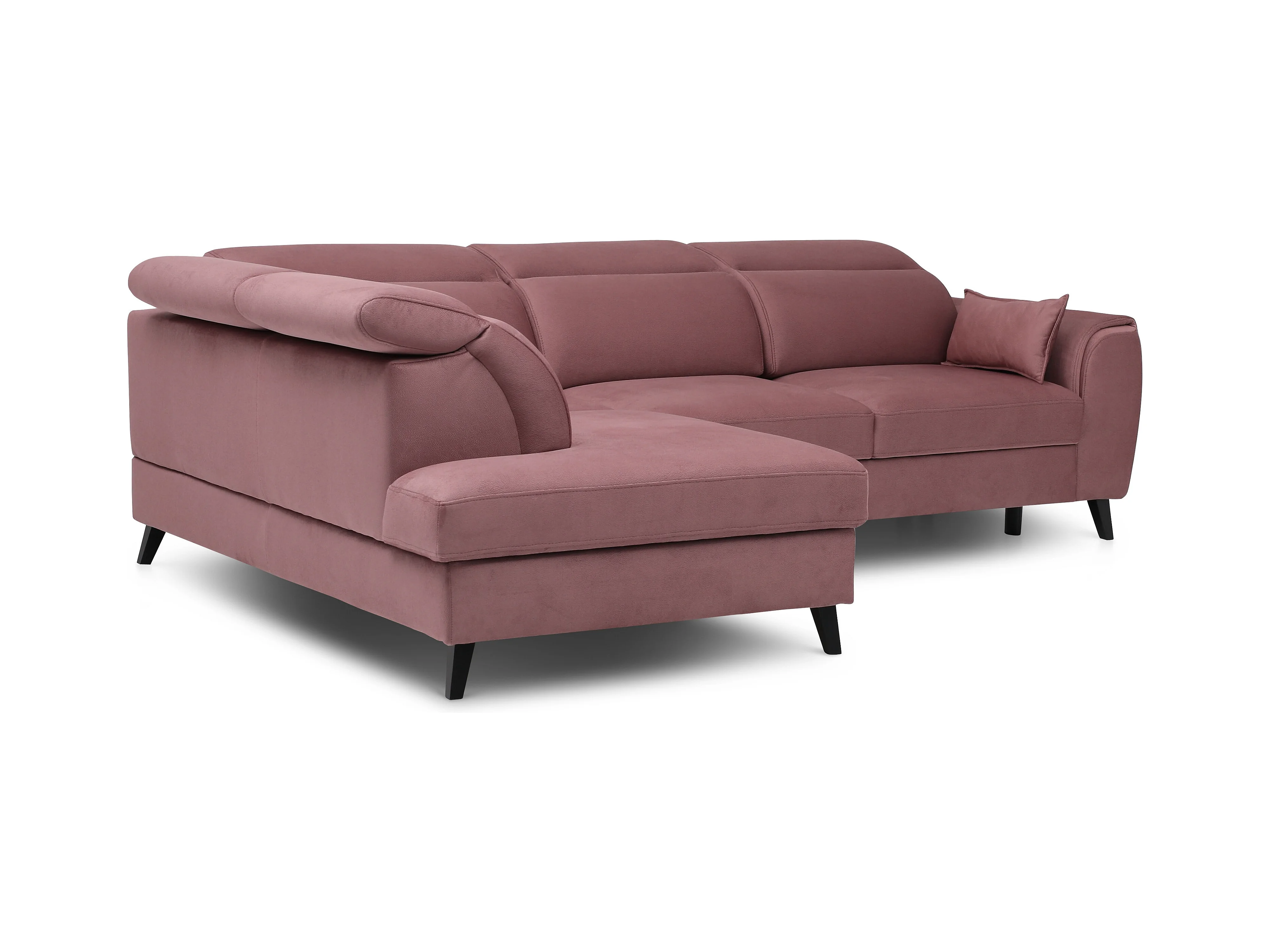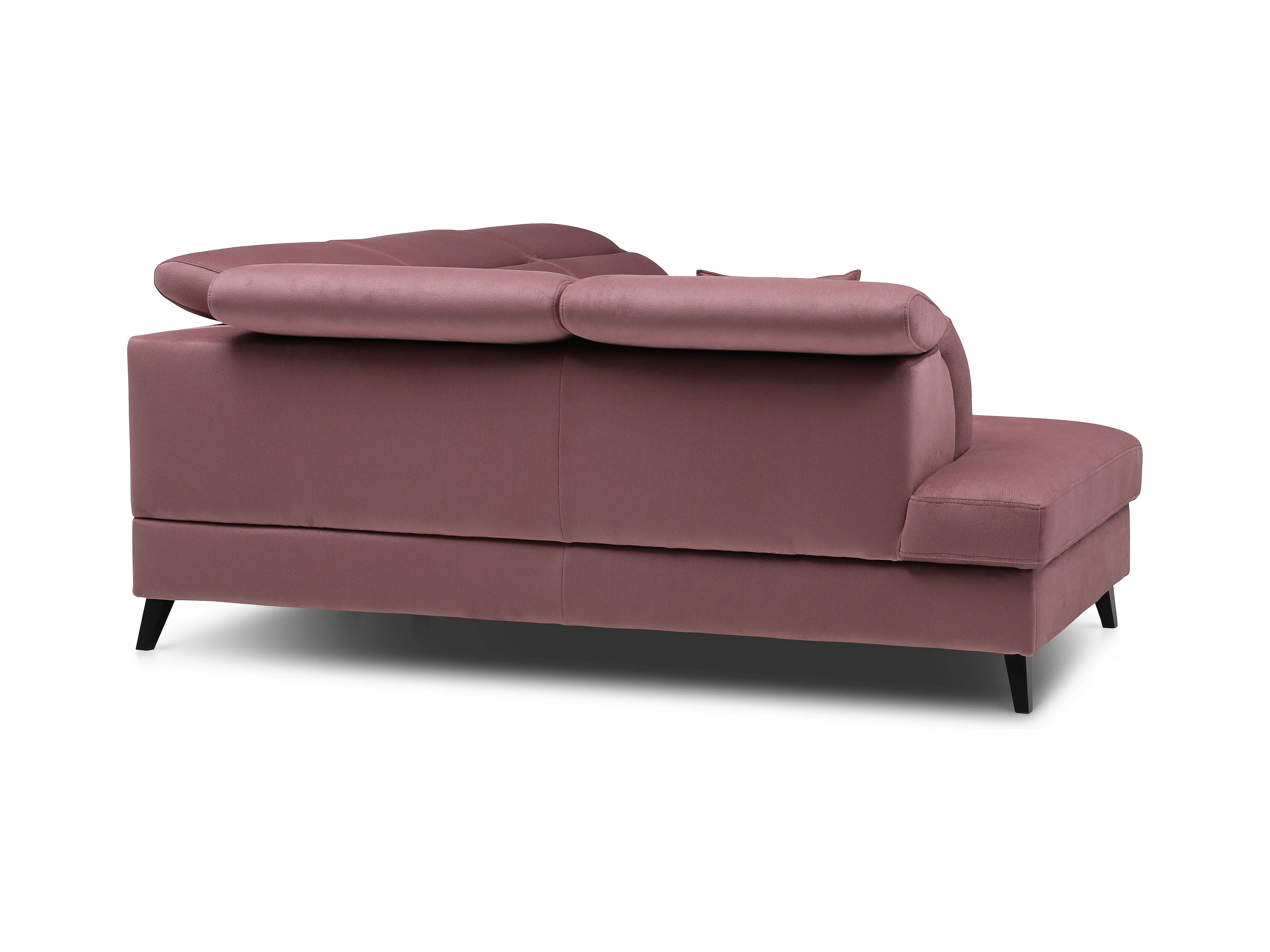 Canapé d'angle convertible velours appuis-tête réglables ASTORIA - Coffre et pieds bois noir-Vieux rose-angle gauche