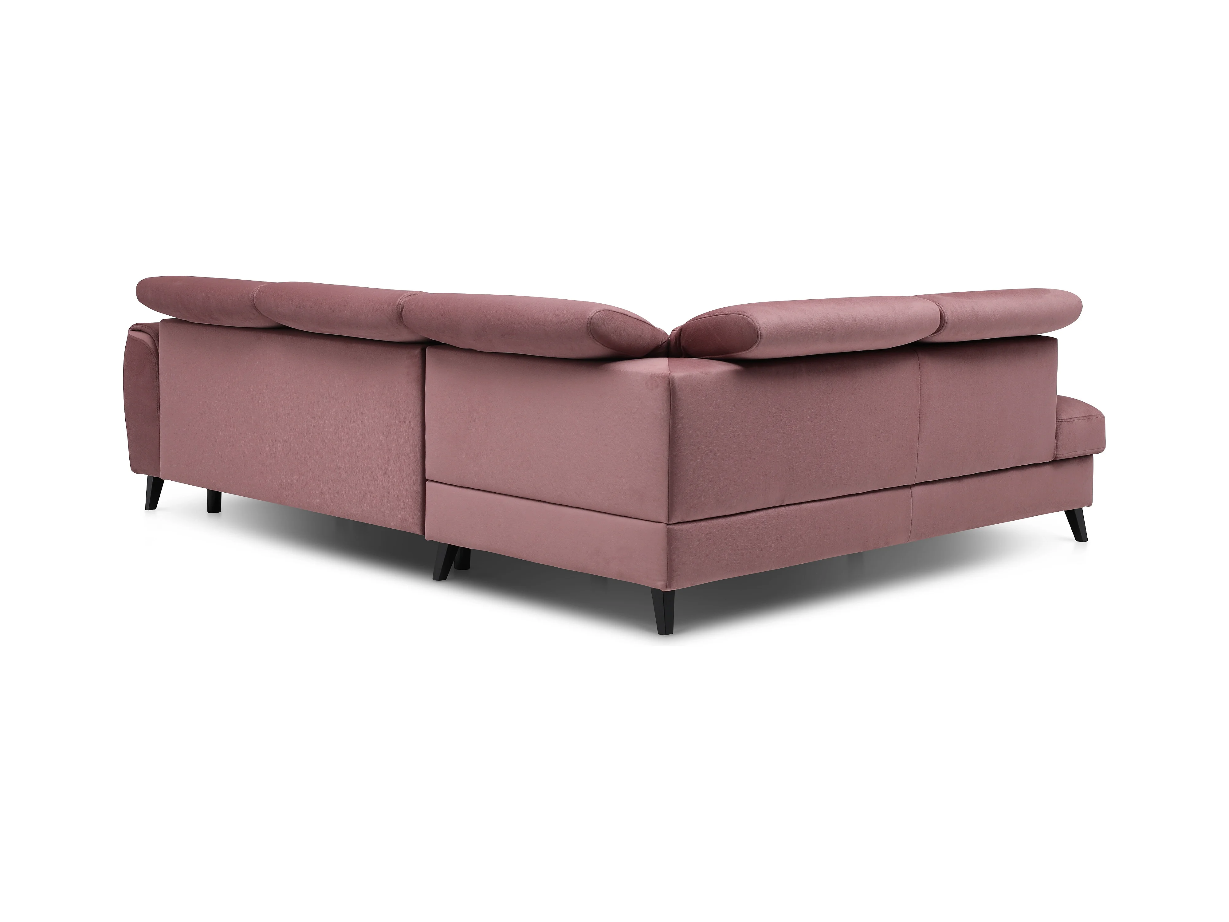 Canapé d'angle convertible velours appuis-tête réglables ASTORIA - Coffre et pieds bois noir-Rose clair-angle droit