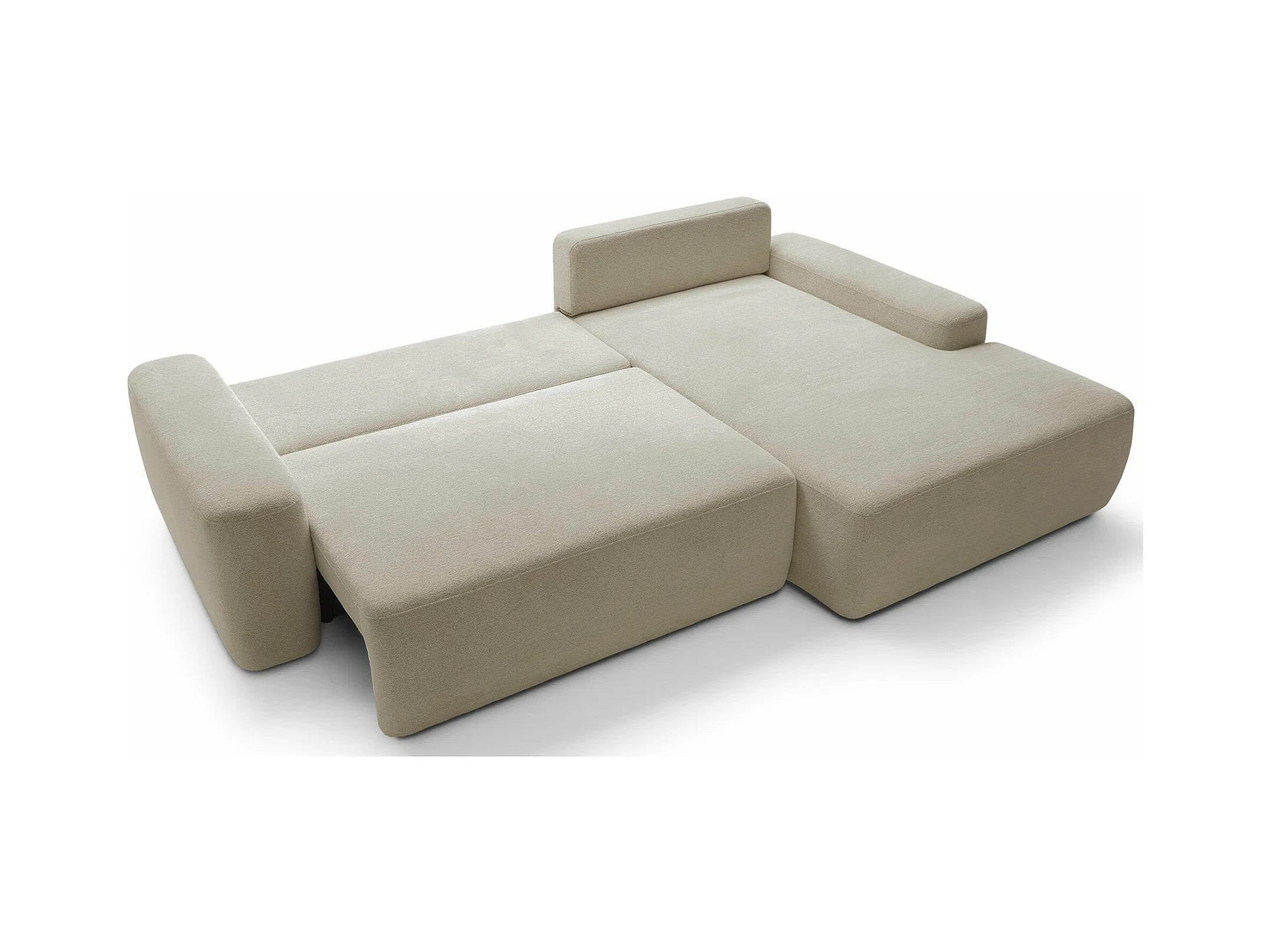 Canapé panoramique convertible BENTO en tissu avec coffre de rangement-Beige clair-angle droit