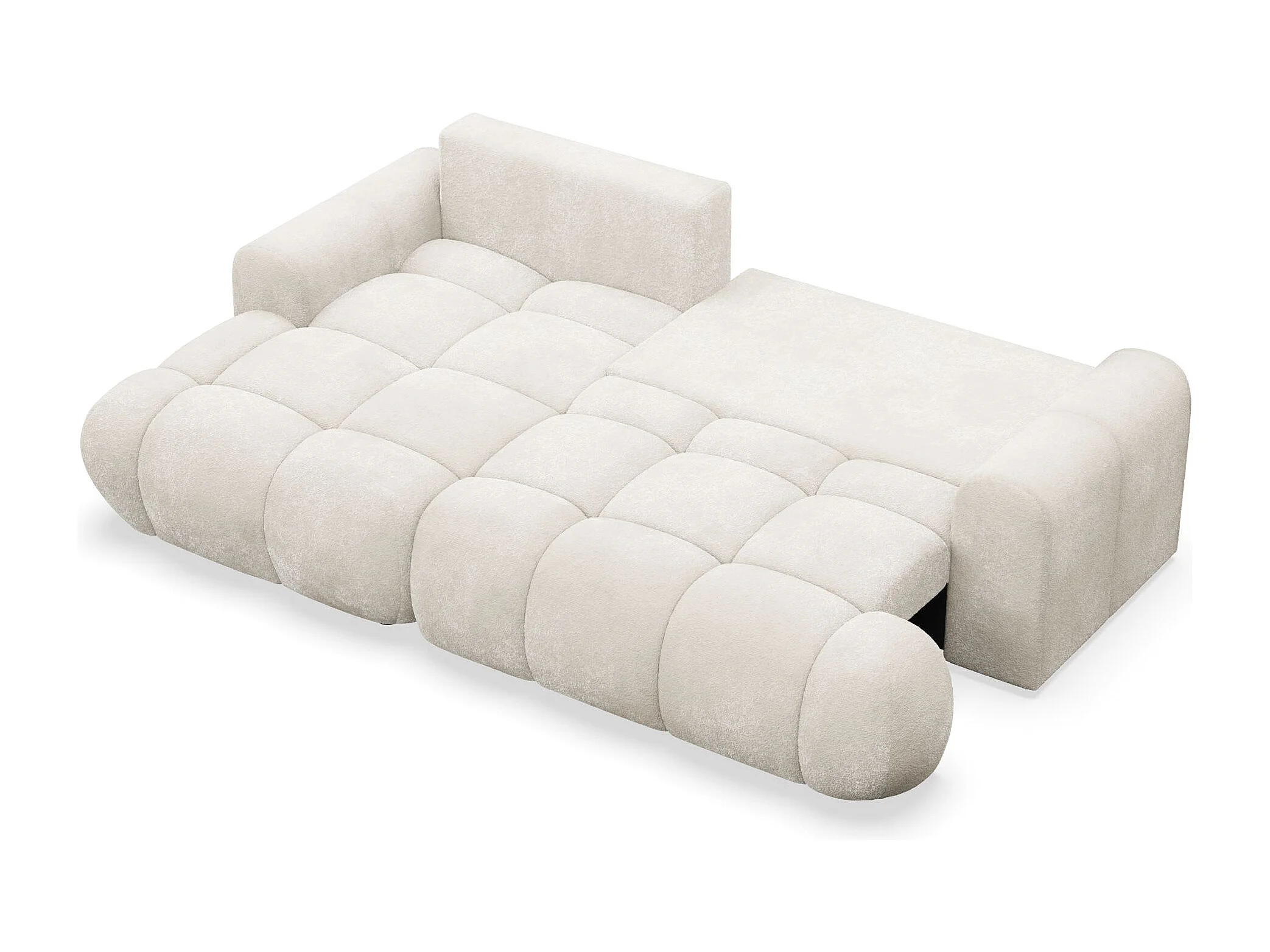 Canapé d'angle convertible - en peluche crème- côté gauche - OMBO MINI