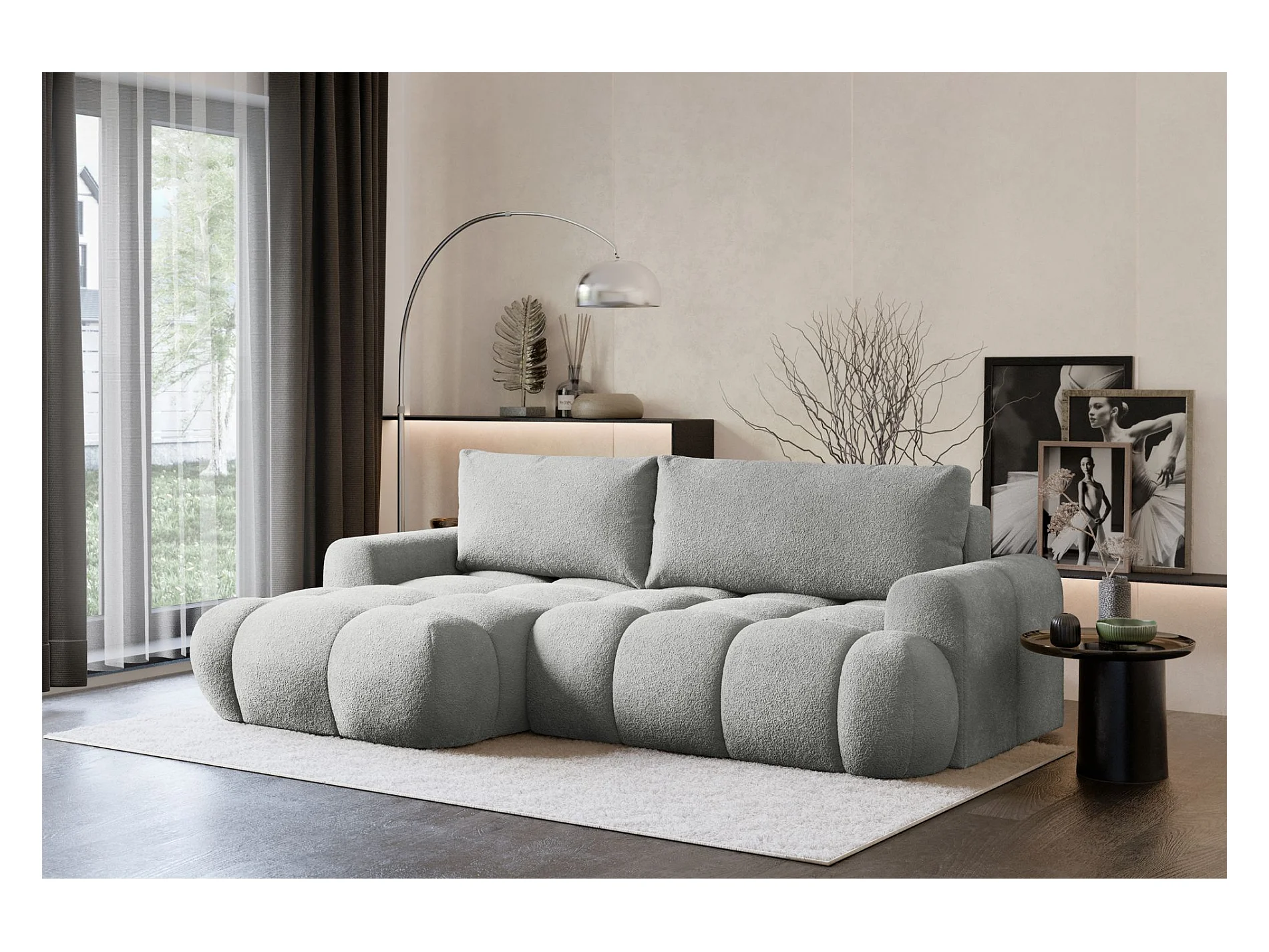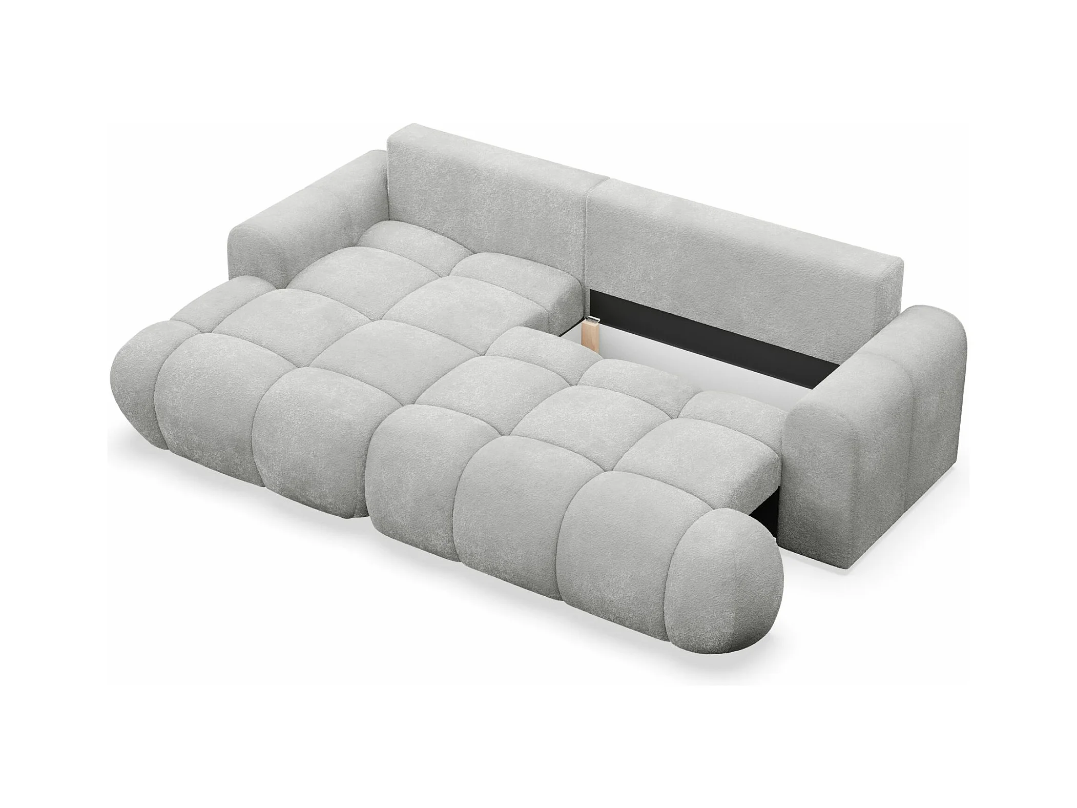 Canapé d'angle convertible - en bouclé gris clair avec revêtement - côté gauche - DANDELINO