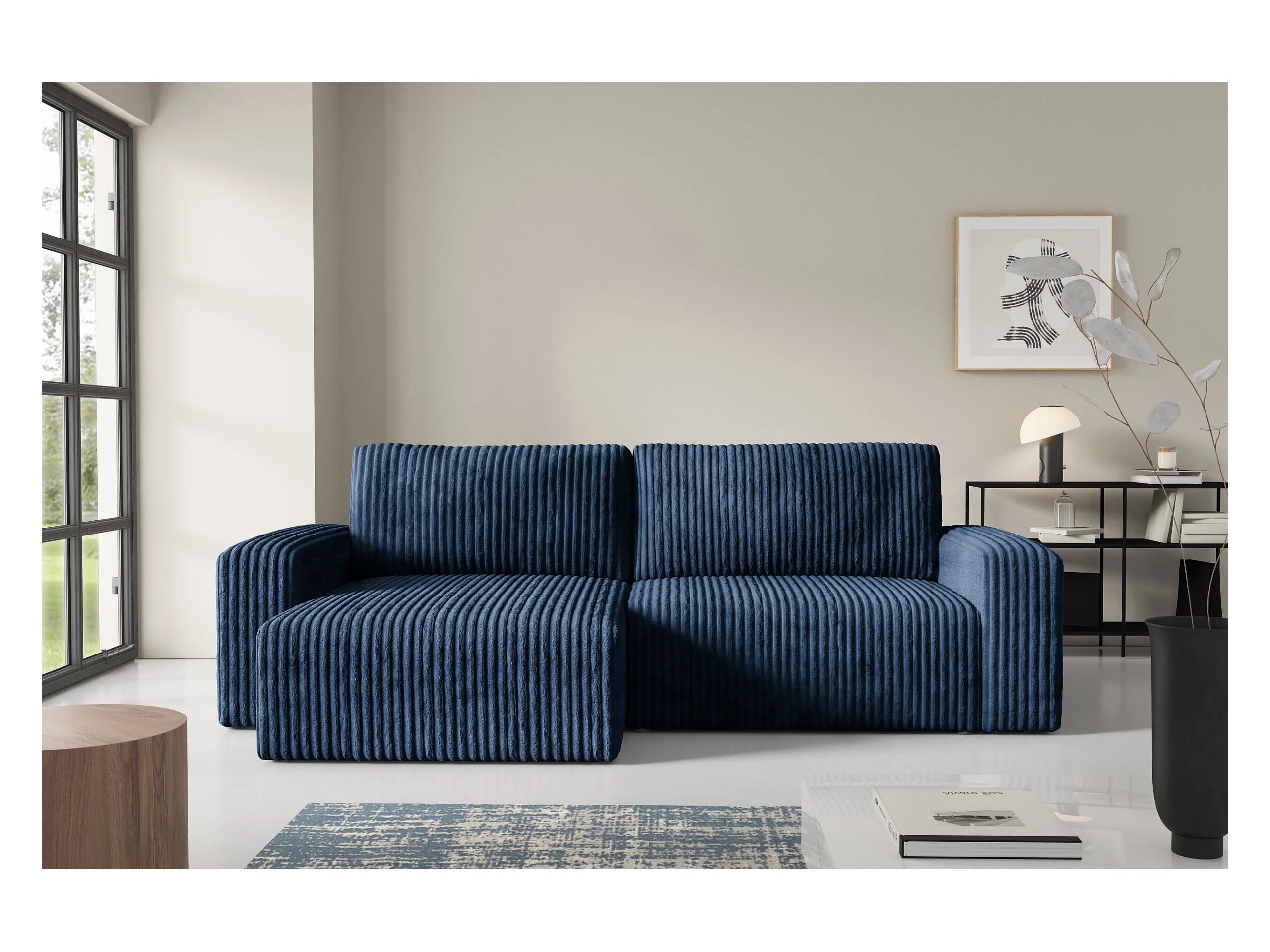 Canapé d'angle convertible - en velours côtelé marine - PIANONI