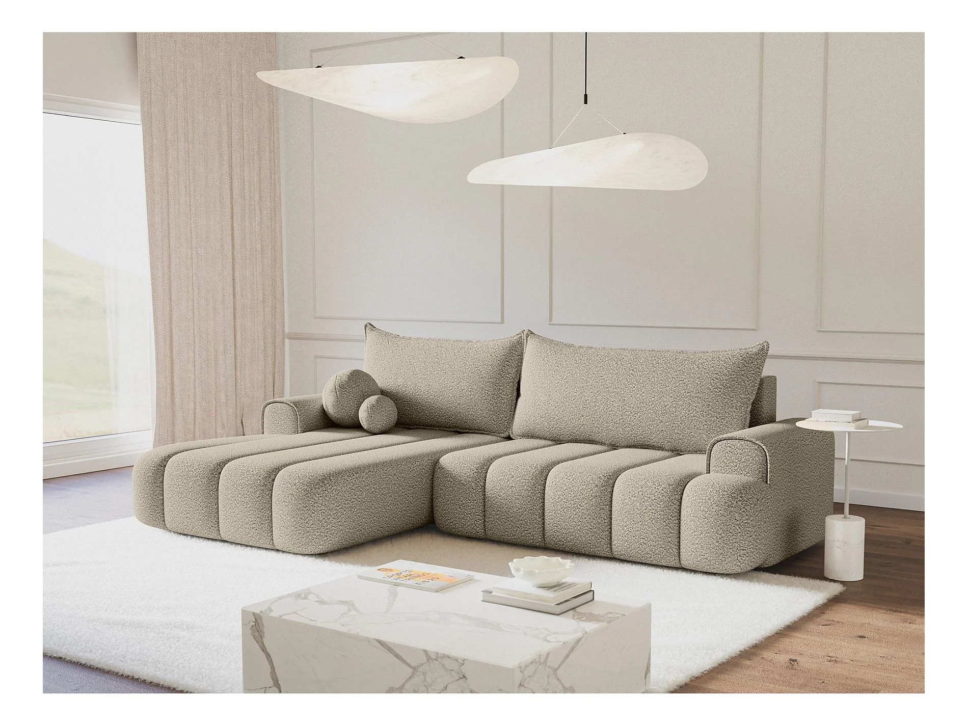 Canapé d'angle convertible – beige – côté gauche – KASSIAN