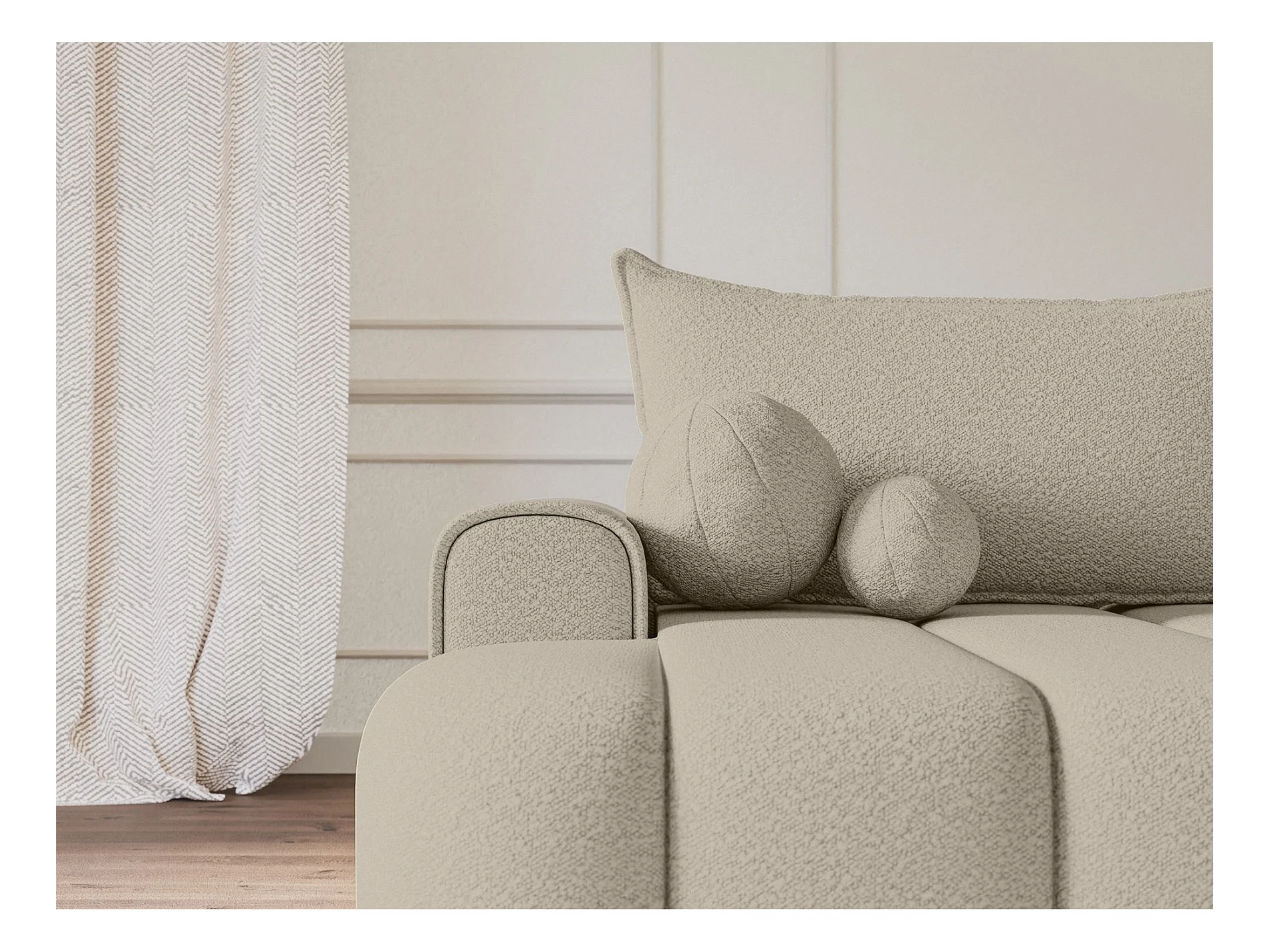 Canapé d'angle convertible - en bouclé beige clair avec revêtement - côté gauche - DANDELINO
