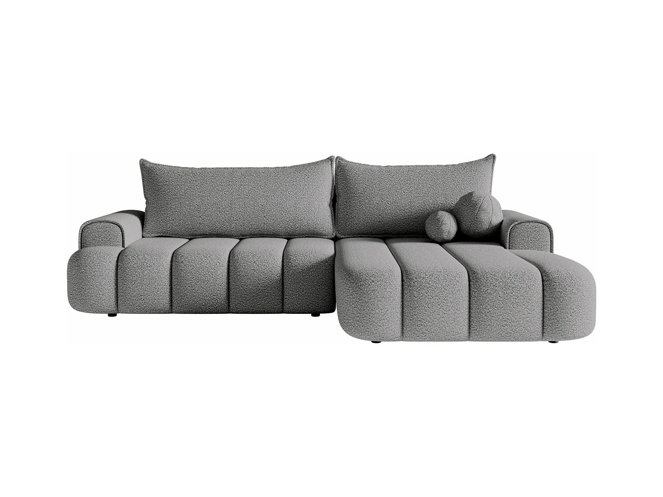 Canapé d'angle convertible - en bouclé gris avec revêtement - côté droit - DANDELINO