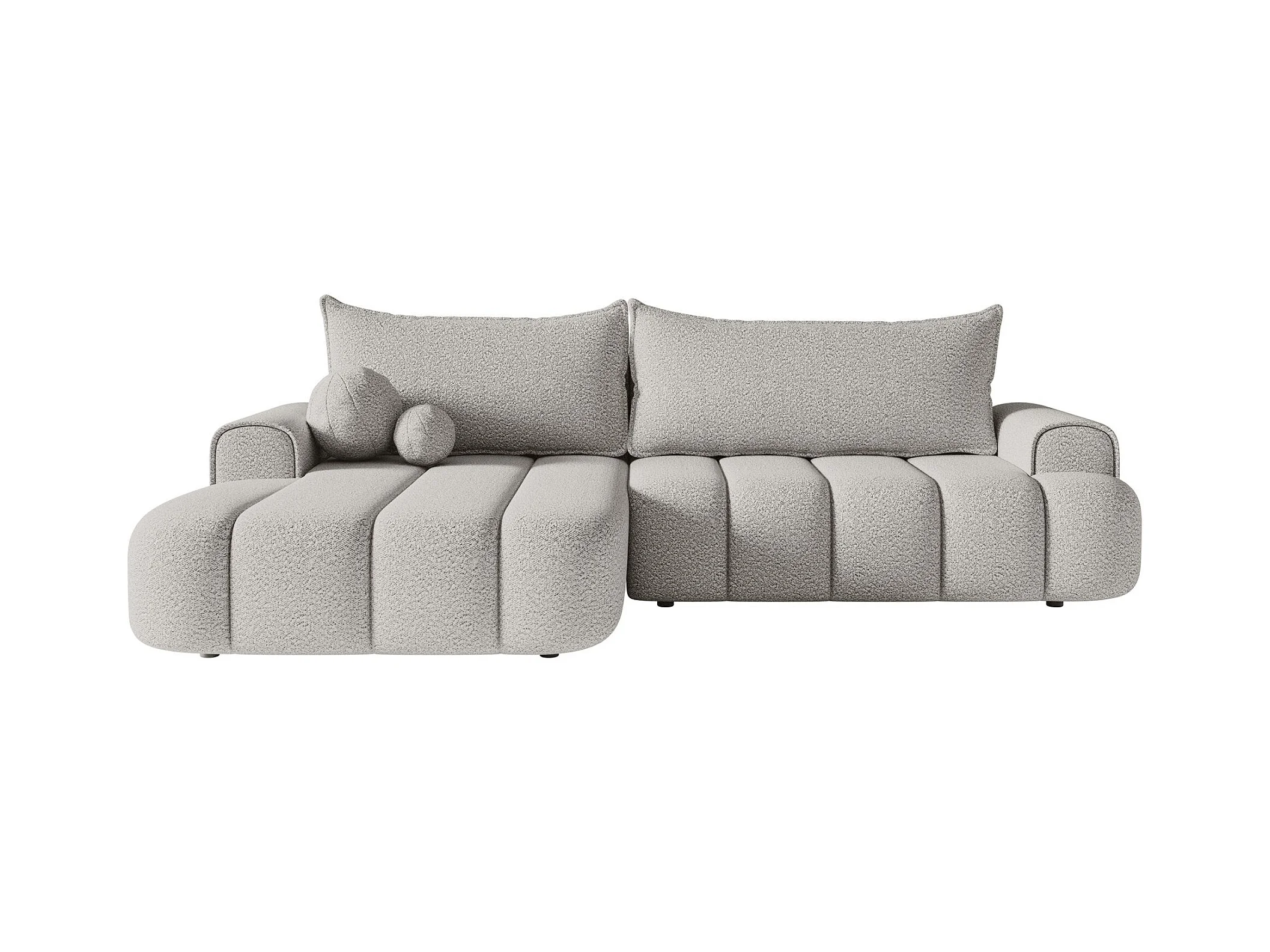 Canapé d'angle convertible - en bouclé gris clair avec revêtement - côté gauche - DANDELINO