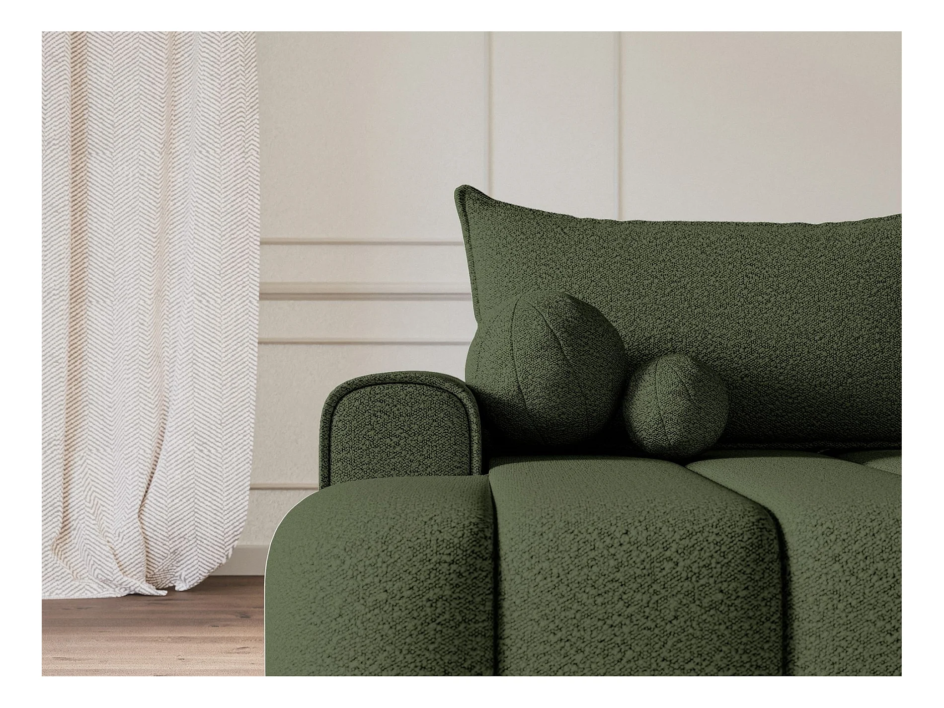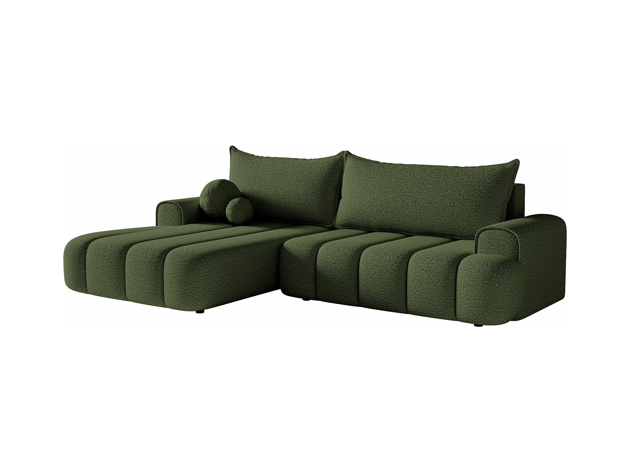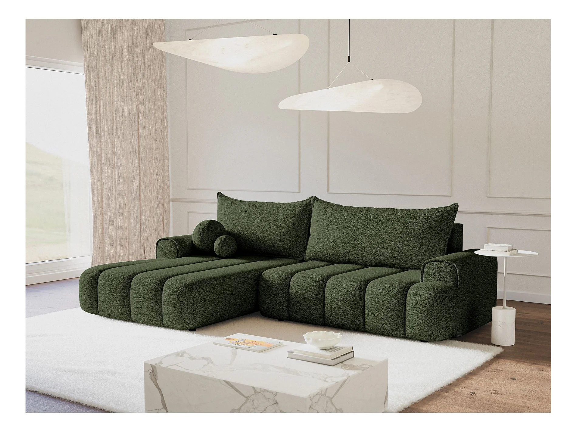 Canapé d'angle convertible - en bouclé vert olive avec revêtement - côté gauche - DANDELINO