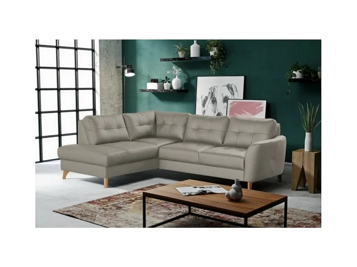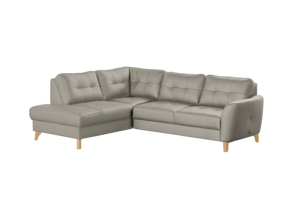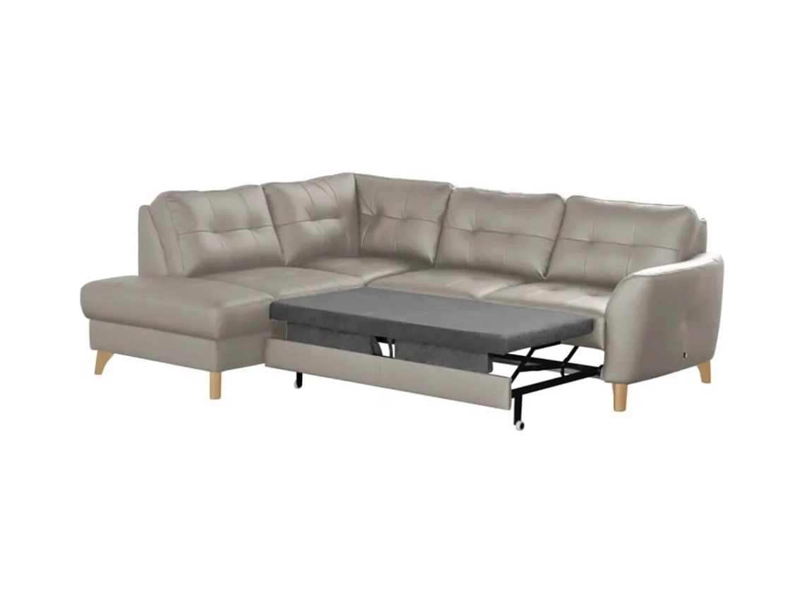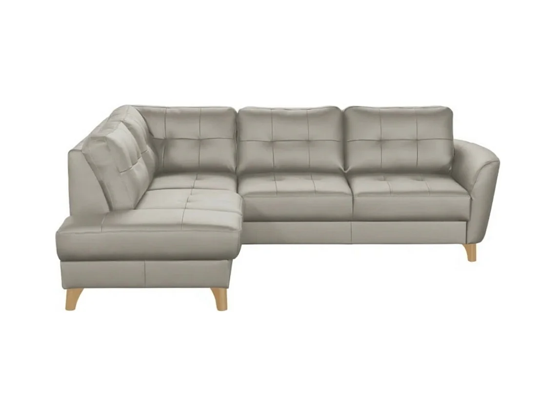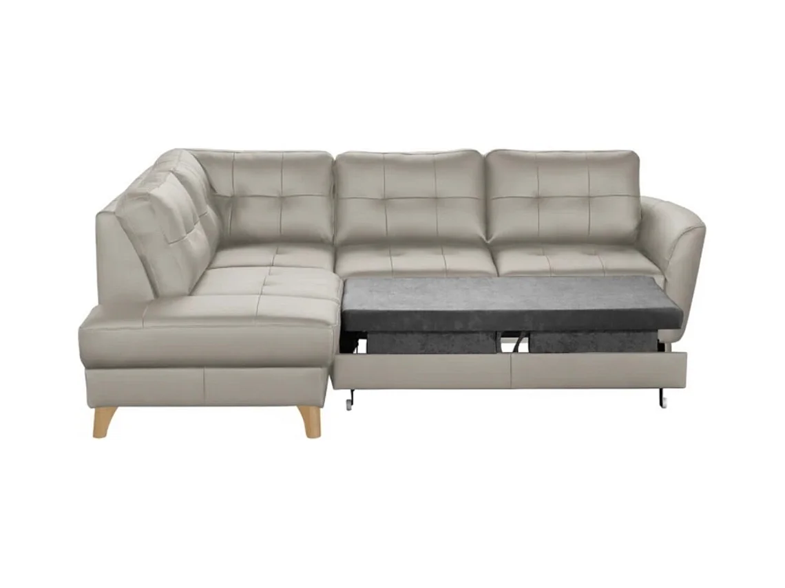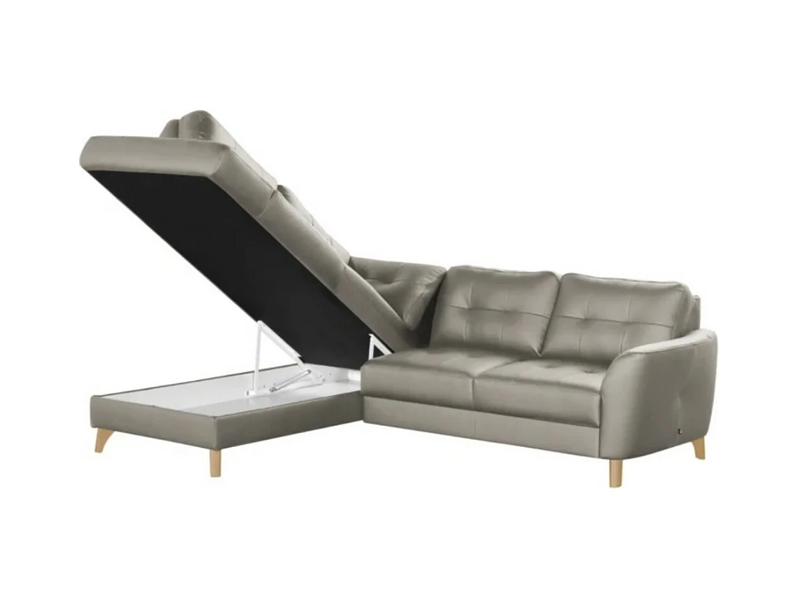 Canapé d'angle convertible en cuir italien de luxe 5 places NORIA avec coffre, gris clair, angle gauche