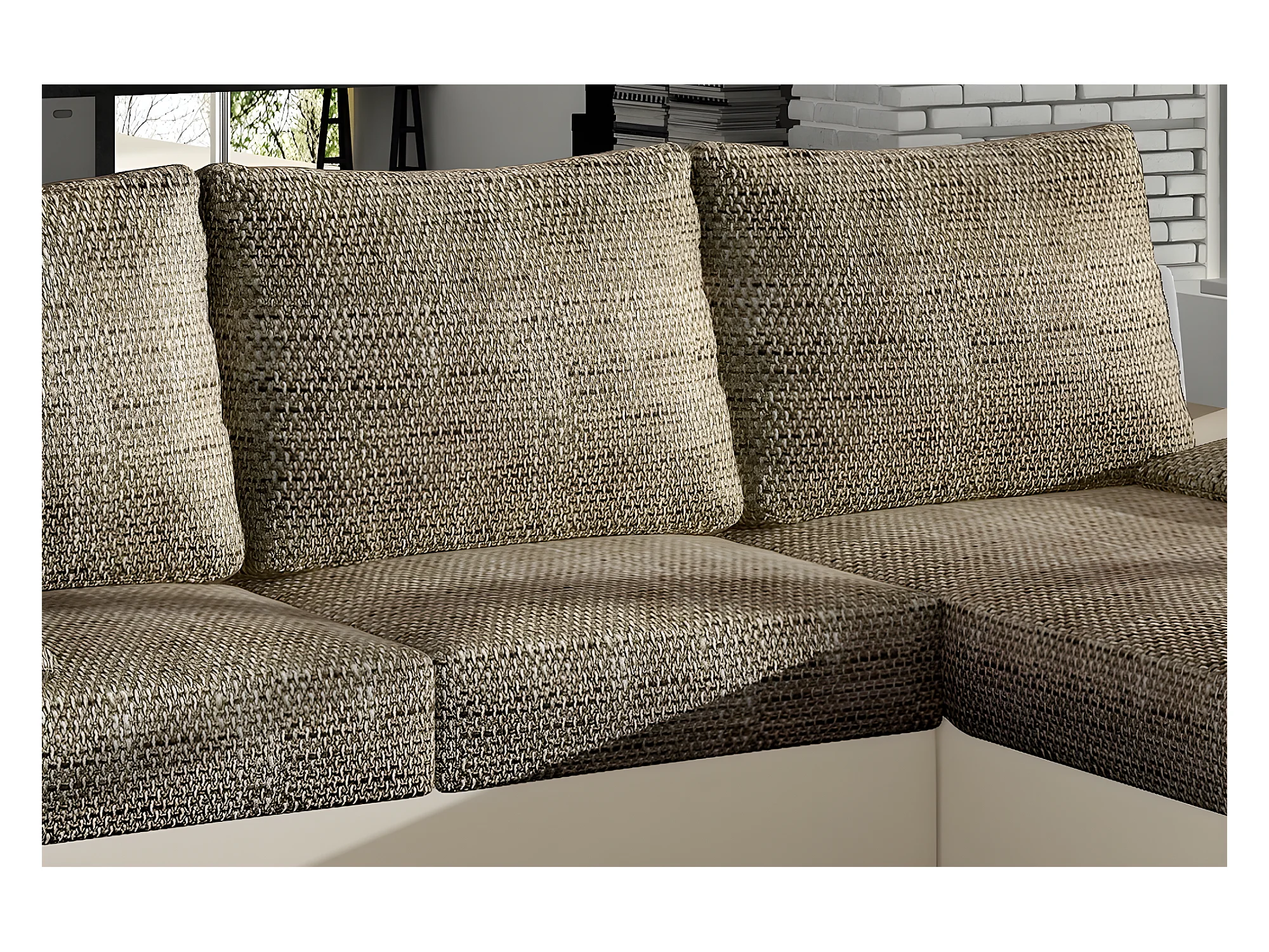 Canapé d'angle - convertible - FELIPE - en tissu chocolat et simili cuir écru, 5/6 places