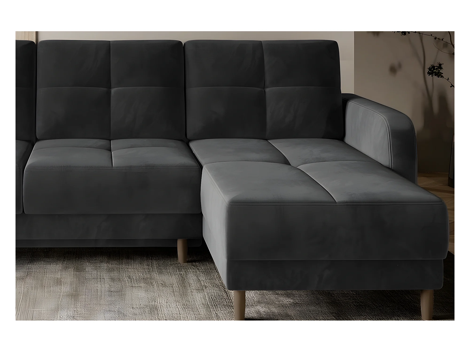 Canapé d'angle convertible en tissu velours luxe, rangement - gris foncé, angle droit (vu de face), ROXANE VELOURS