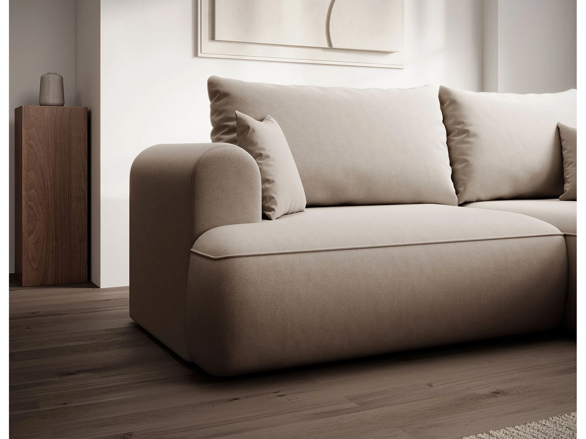 Canapé d'angle convertible - en velours beige - côté droit - OVO MINI