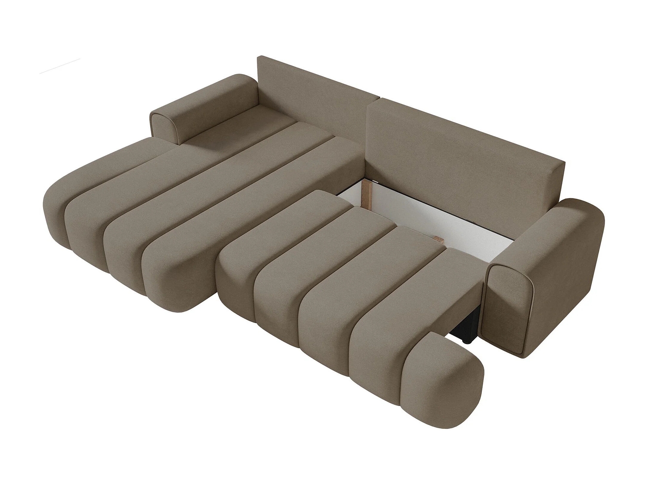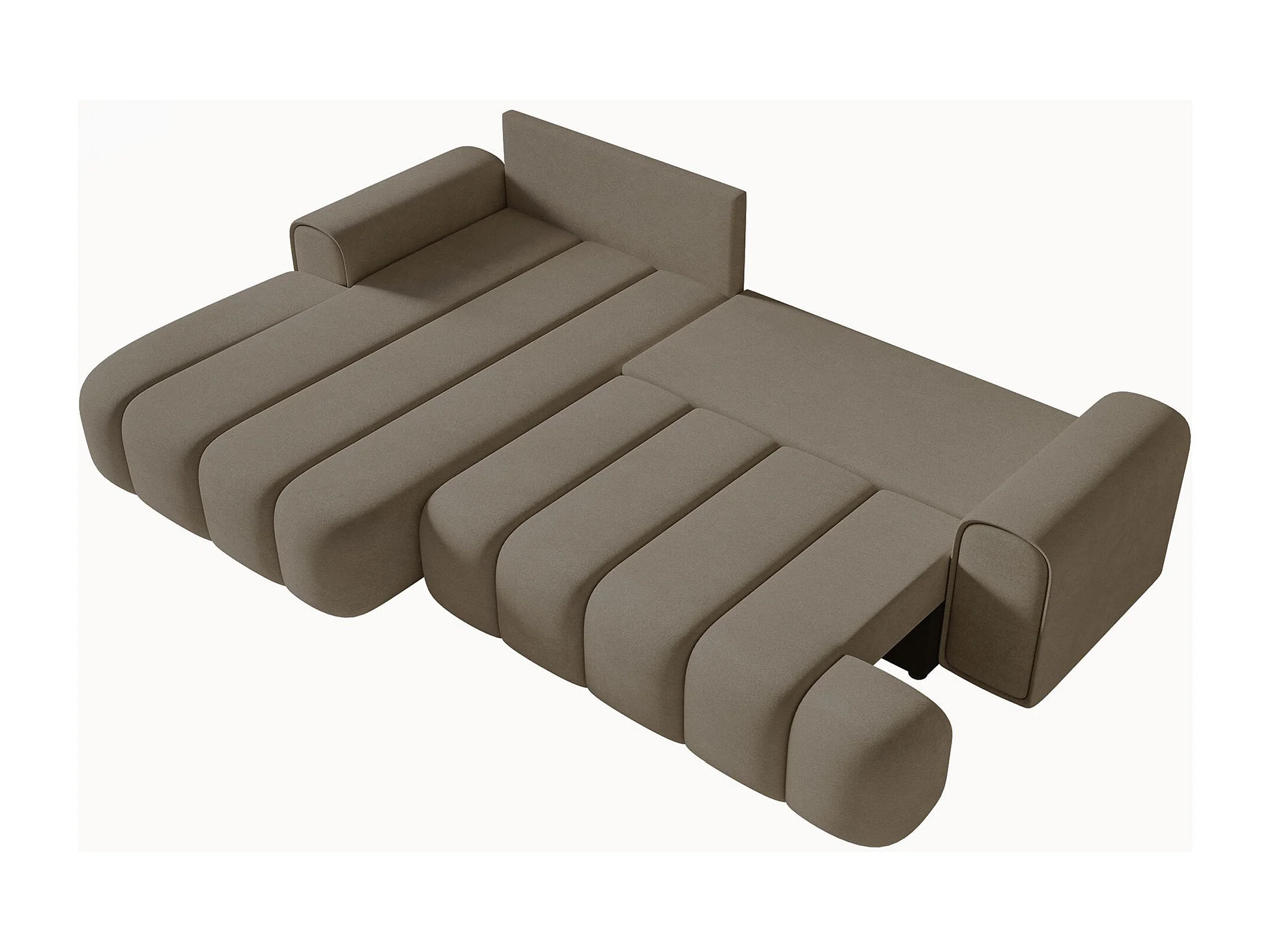 Canapé d'angle convertible - en velours beige foncé avec revêtement - côté gauche - DANDELINO
