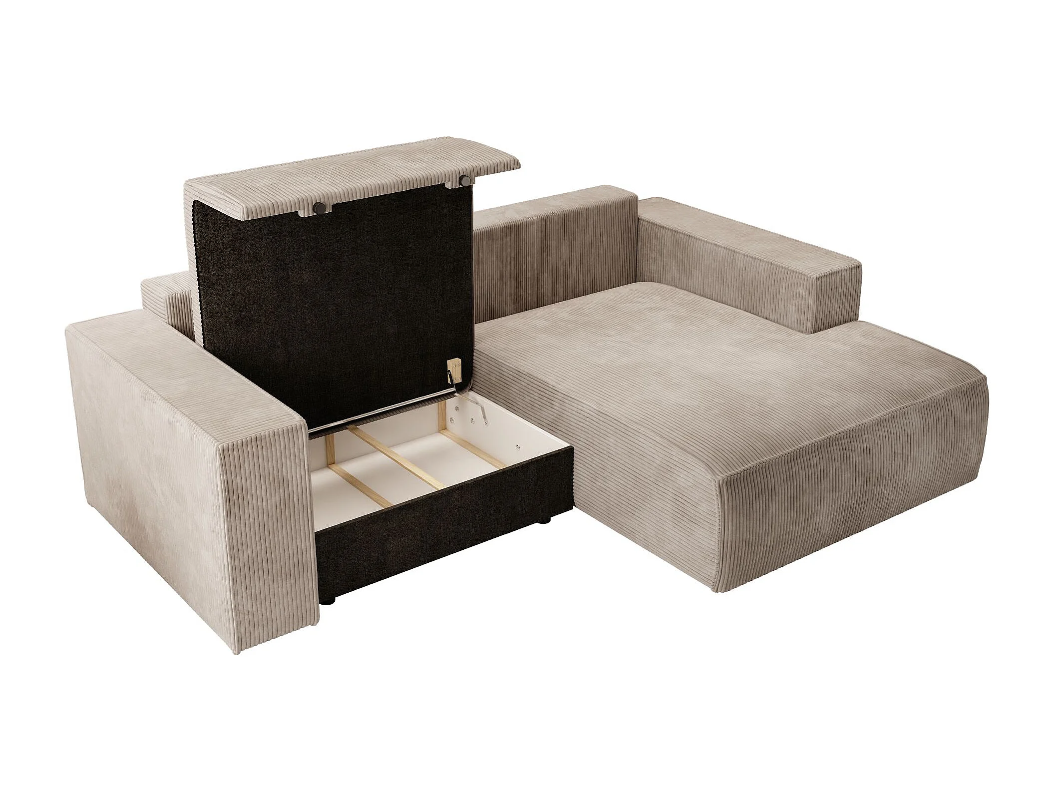 Canapé d’angle convertible – en velours côtelé – beige – droite – FARESE MINI