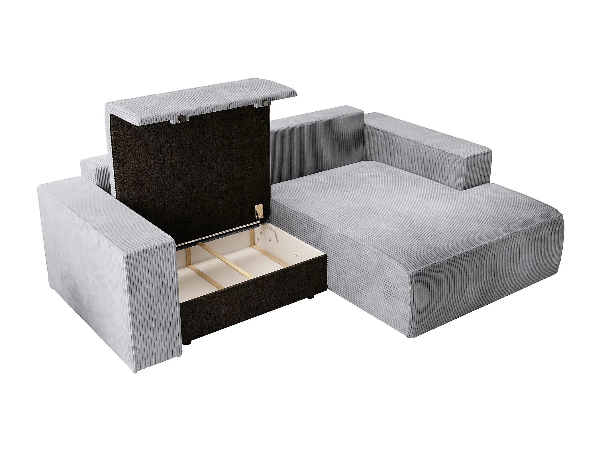 Canapé d’angle convertible – en velours côtelé – gris clair – droite – FARESE MINI
