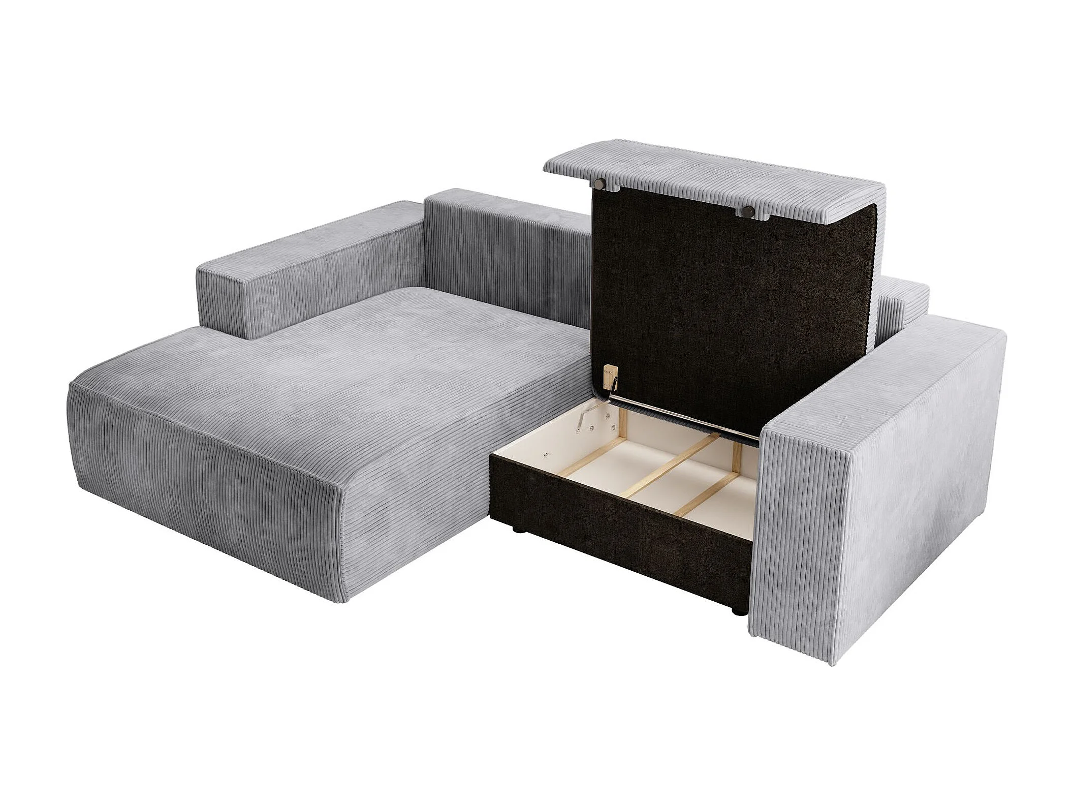 Canapé d’angle convertible – en velours côtelé – gris clair – gauche – FARESE MINI