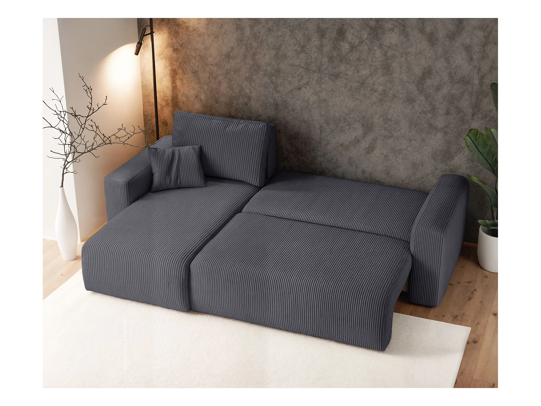 Canapé d’angle en velours côtelé – convertible avec coffre de rangement – gris foncé – droit – OVO CORD