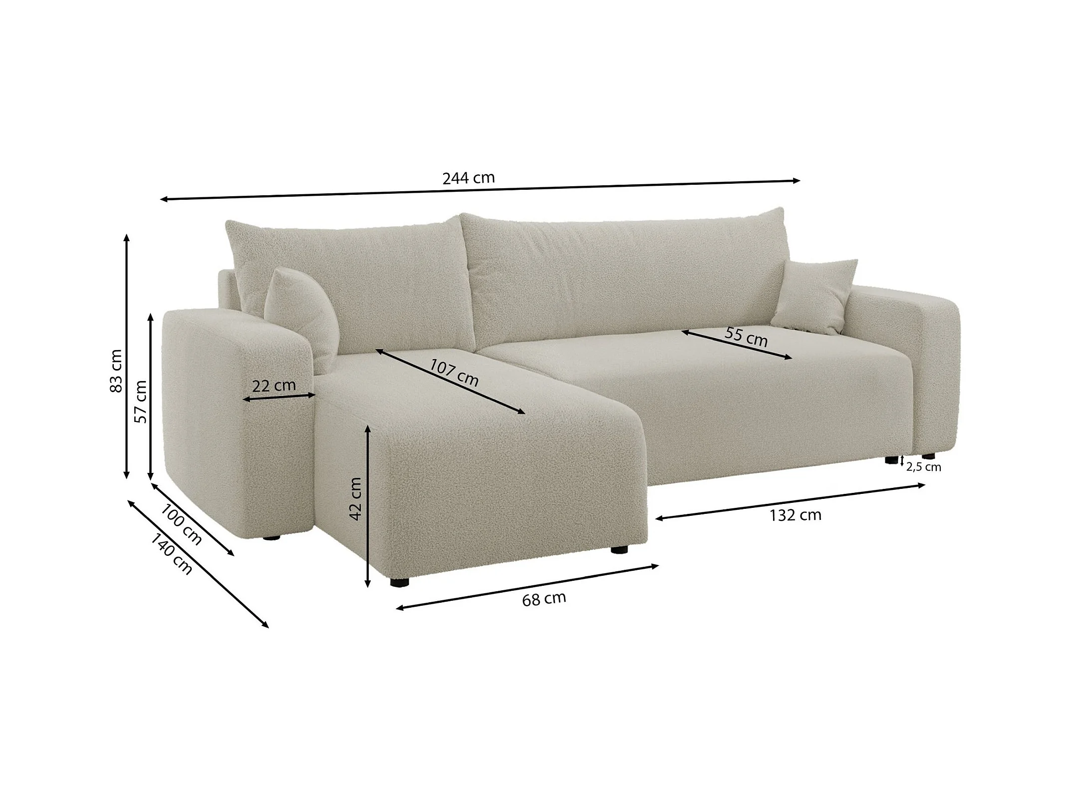 Canapé d'angle convertible - gris chenille - côté gauche - CARNOS