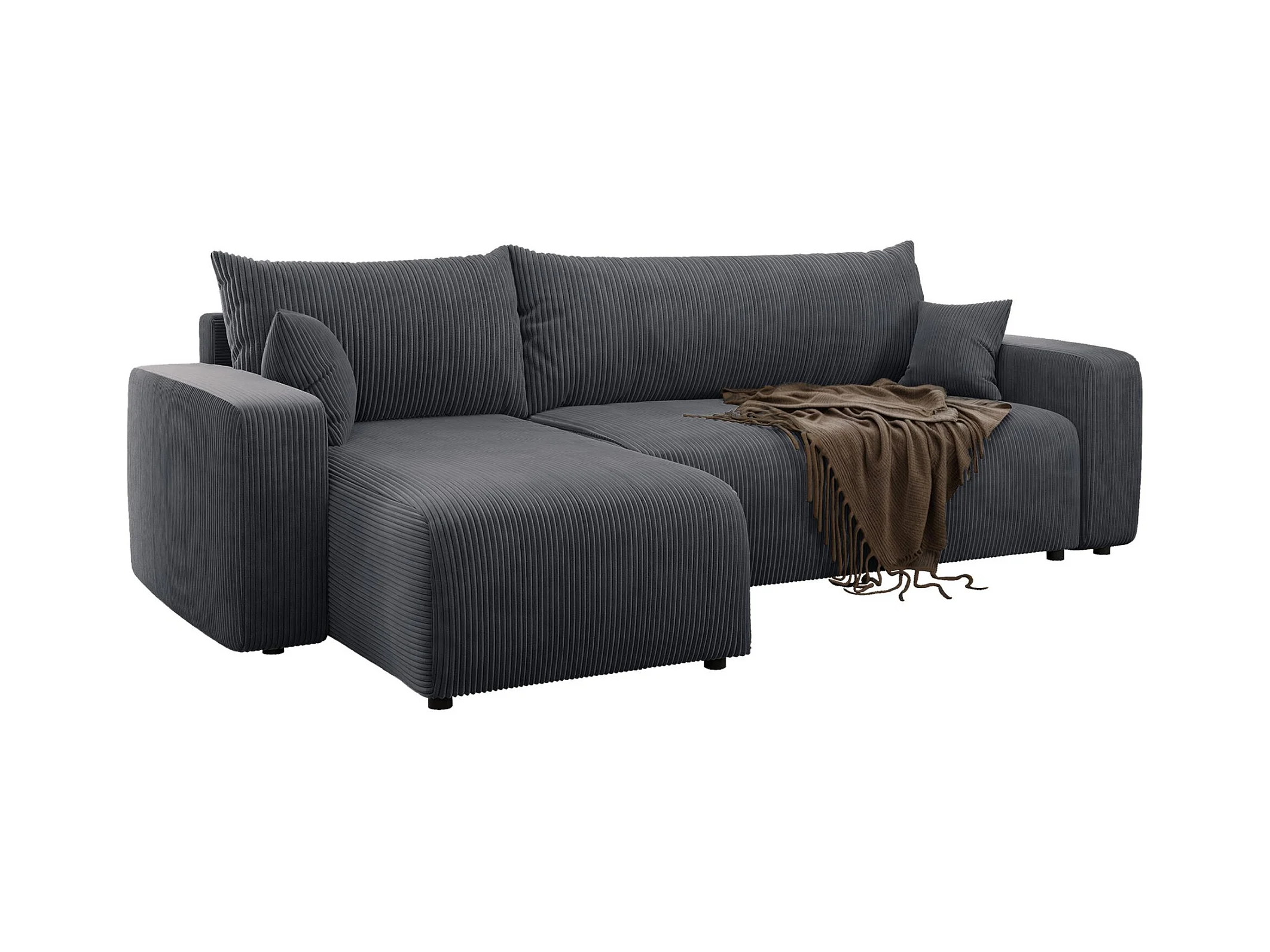 Canapé d’angle en velours côtelé – convertible avec coffre de rangement – gris foncé – gauche – OVO CORD