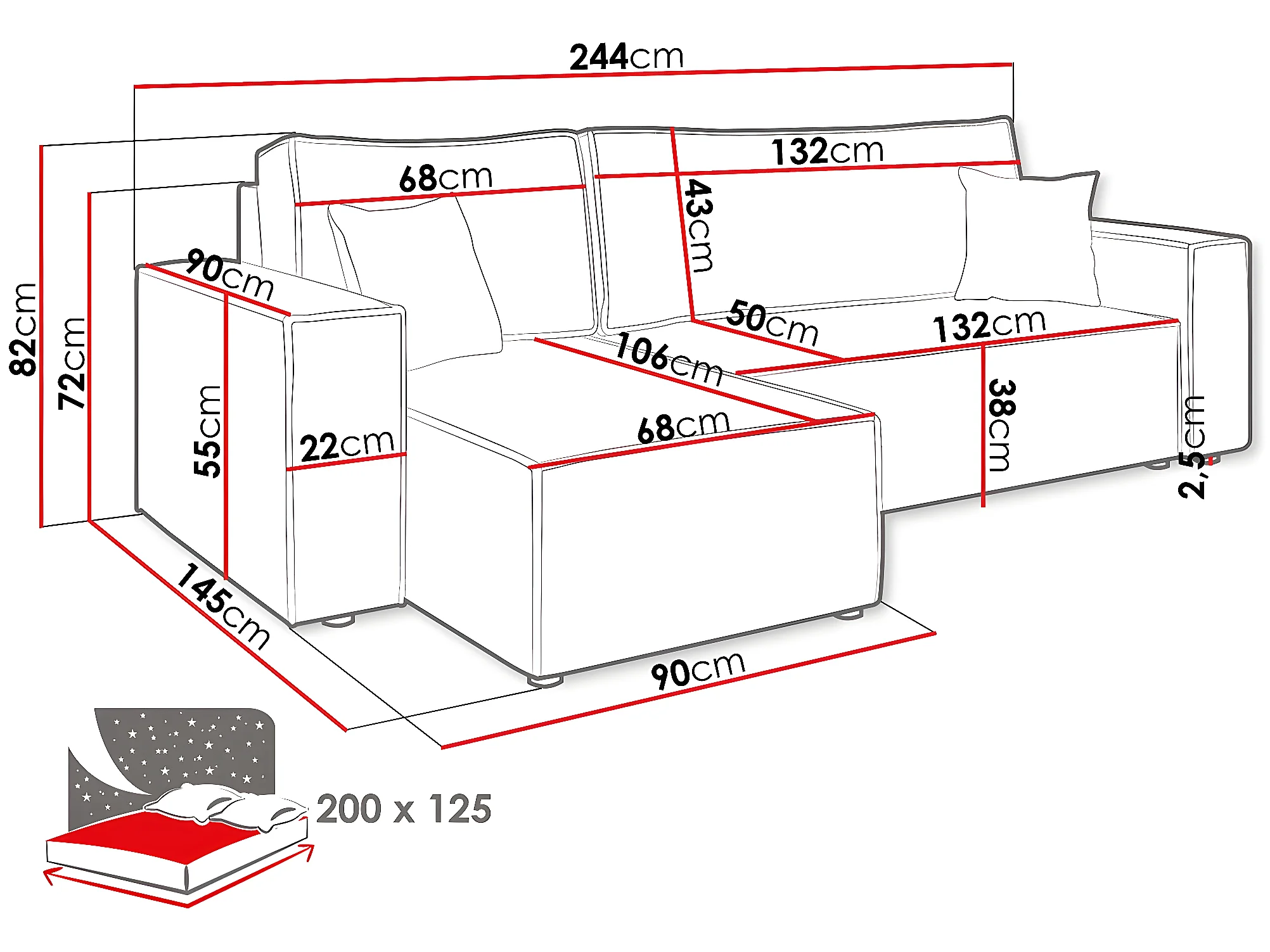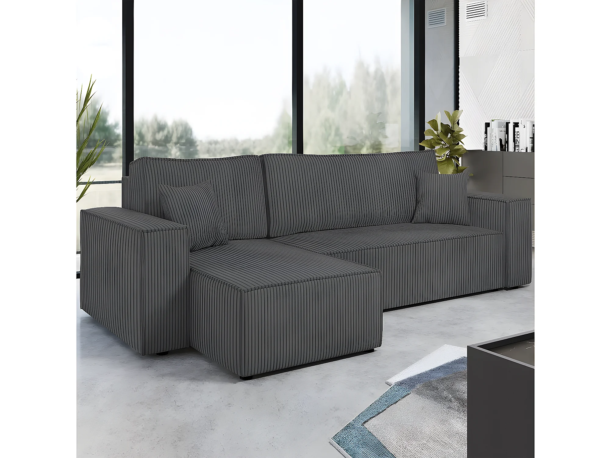 Canapé d'angle convertible en velours côtelé "Karl " - 3 places - Gris foncé