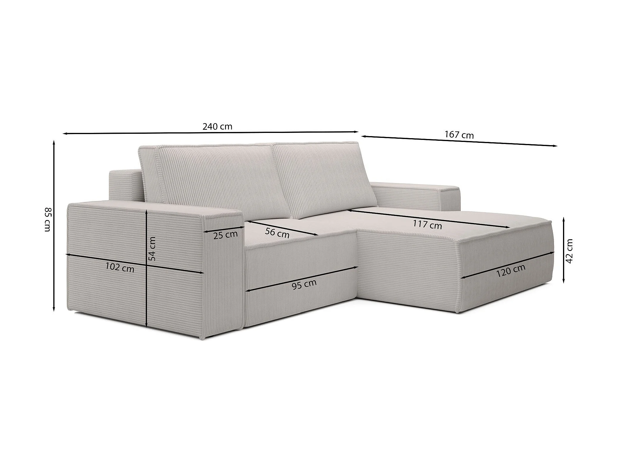 Canapé d’angle convertible – en velours côtelé – vert foncé – gauche – FARESE MINI