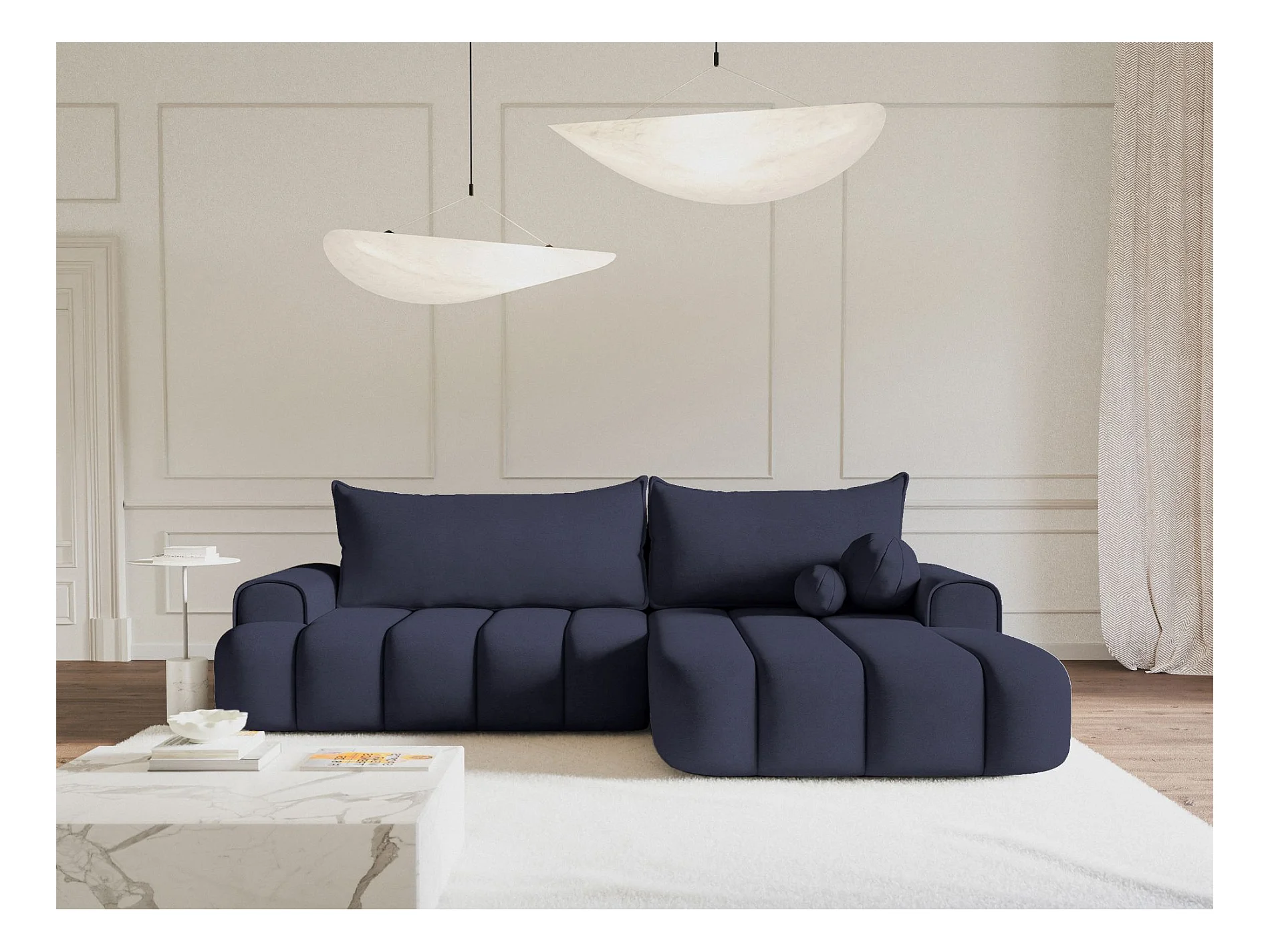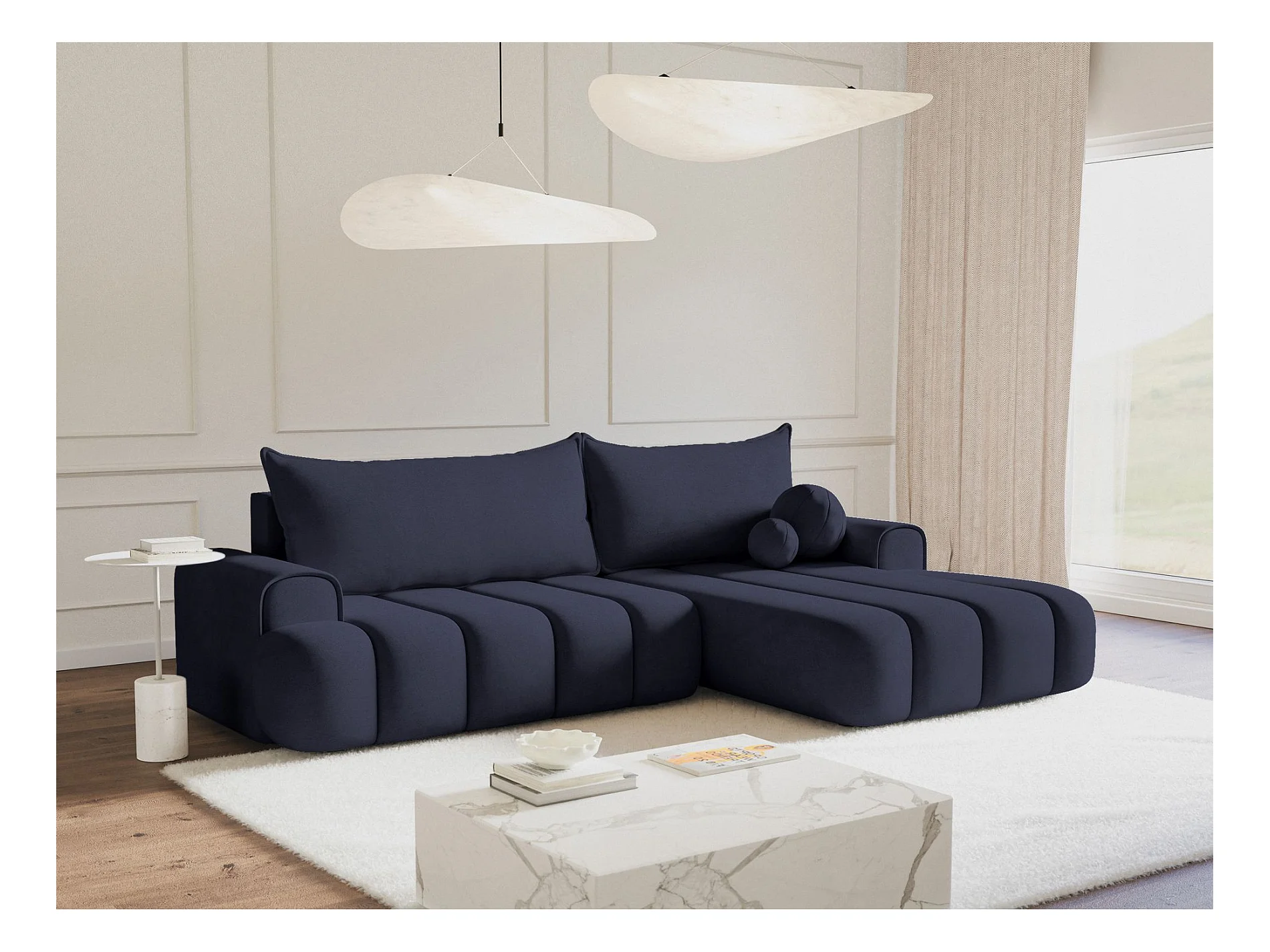 Canapé d'angle convertible – bleu marine – côté gauche – KASSIAN