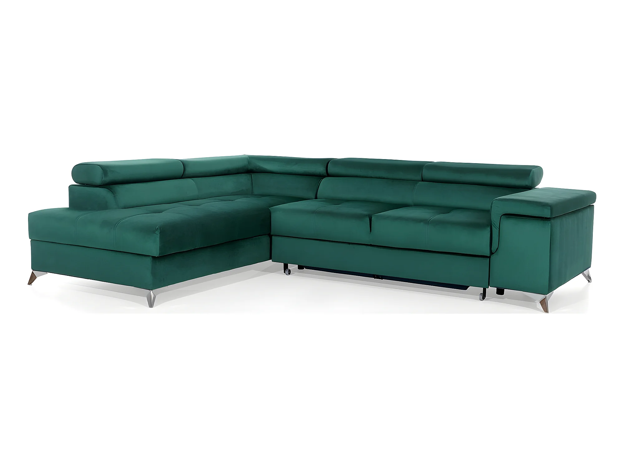 Canapé d'angle convertible - CASTA VELOURS - en tissu Luxe, VERT, 5/6 places, angle gauche (vu de face)