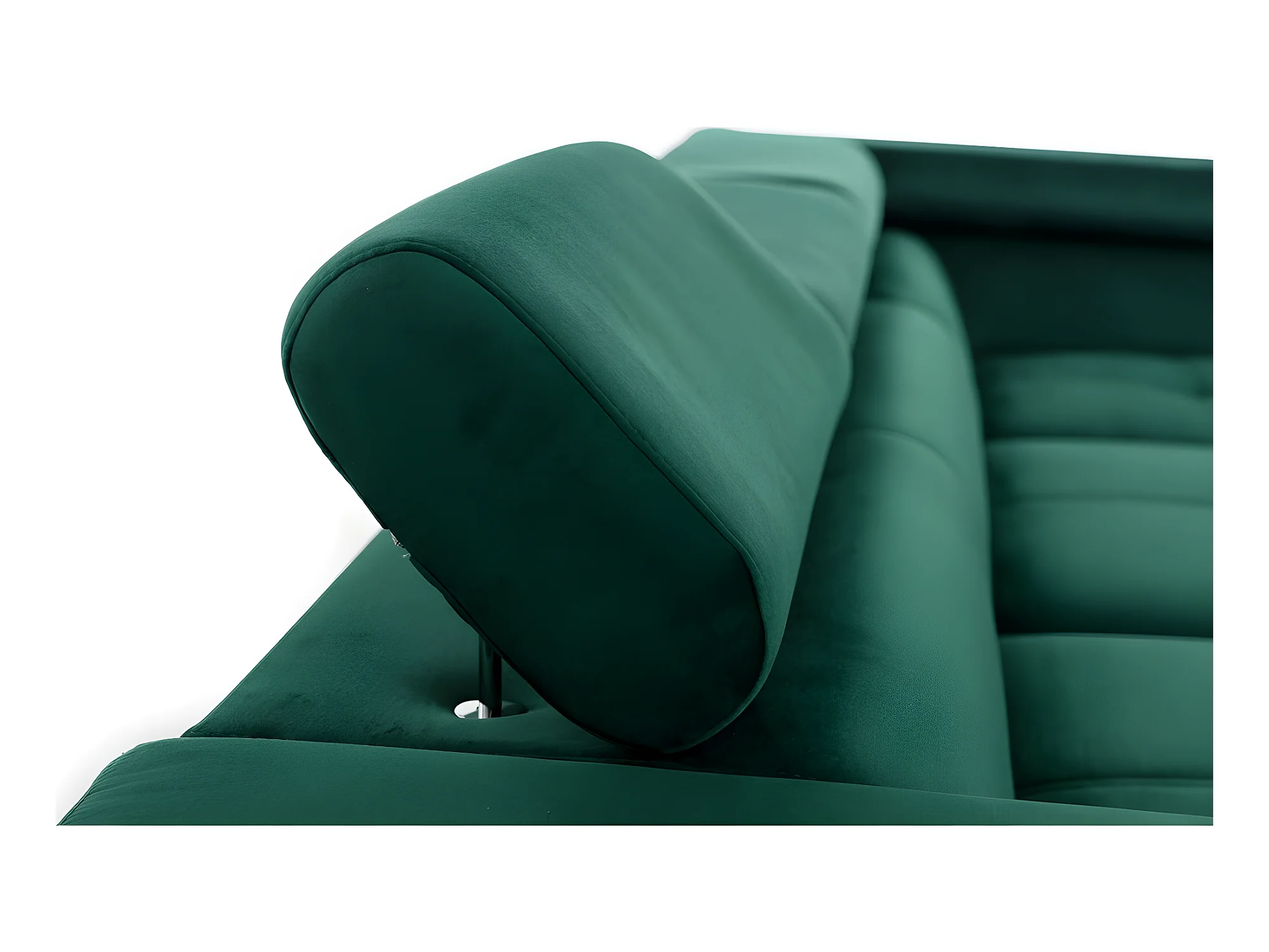 Canapé d'angle convertible en tissu velours Luxe vert, 5 places, angle gauche (vu de face) - GRECE VELOURS