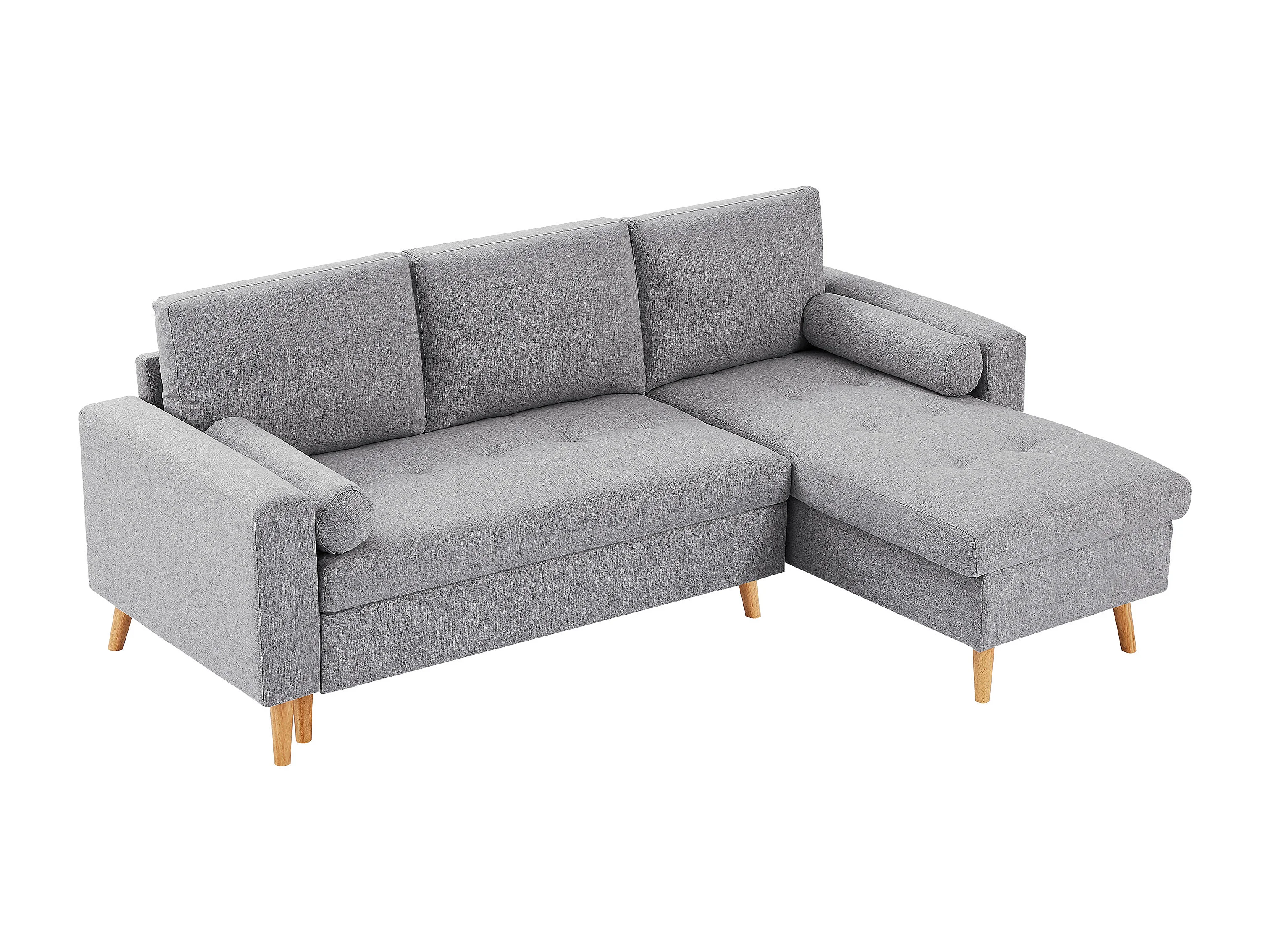 Canapé d'angle convertible et réversible en tissu gris clair avec coffre de rangement KORI