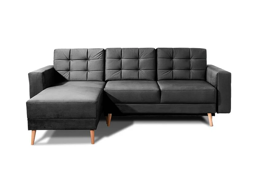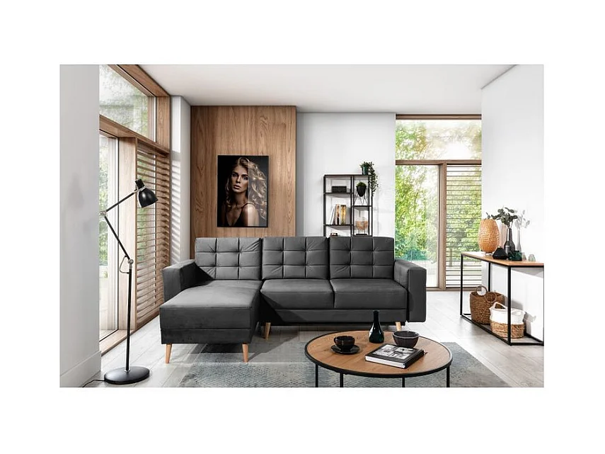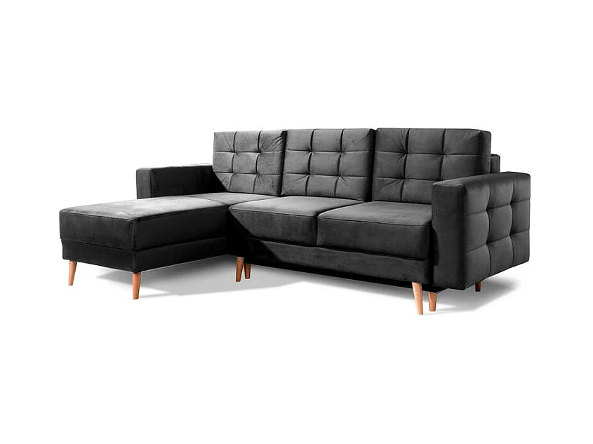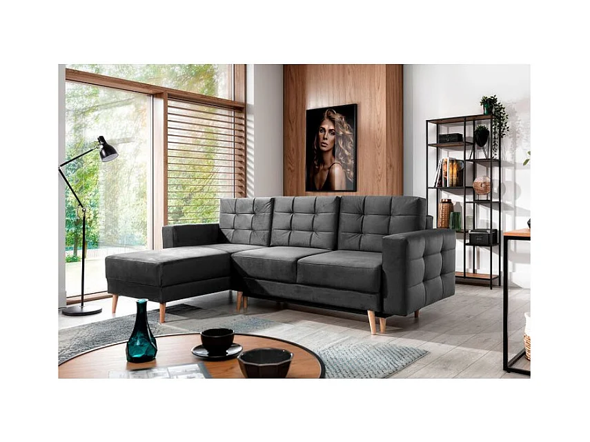 Canapé d'angle convertible avec rangement en velours Majesté-Gris foncé-angle droit