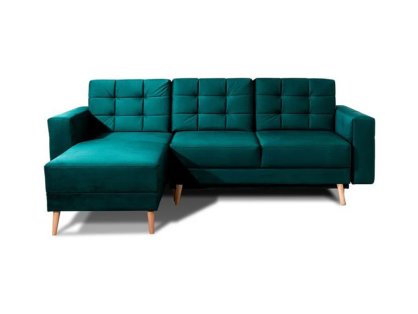 Canapé d'angle convertible avec rangement en velours Majesté-Gris-angle gauche