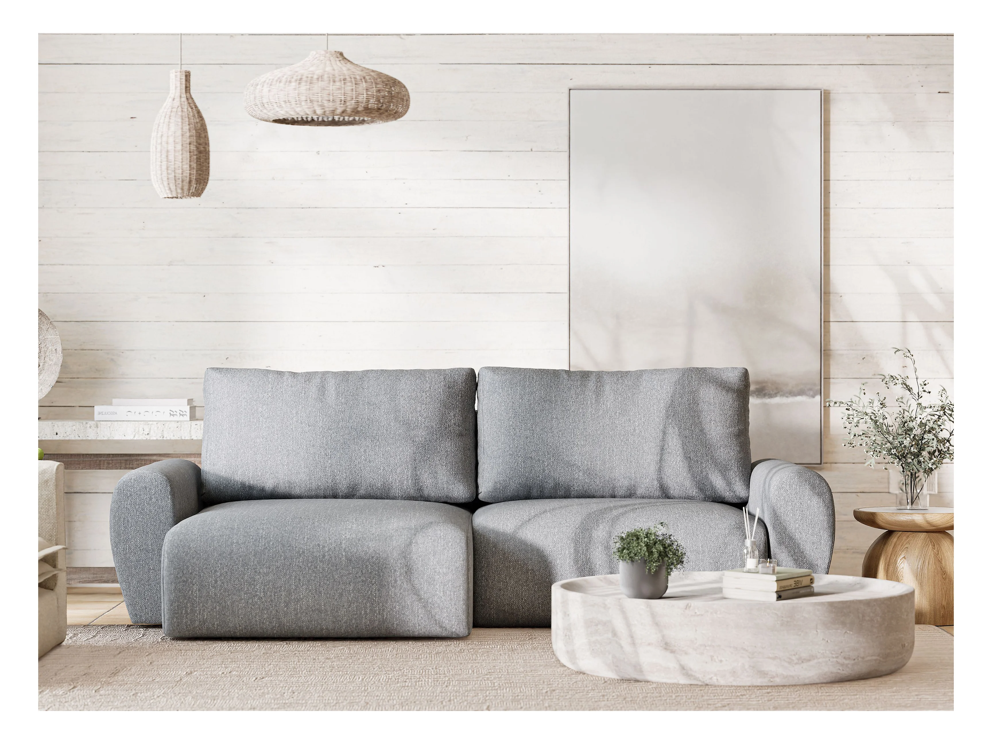 Canapé d'angle gauche avec fonction lit en tissu tressé gris LEON