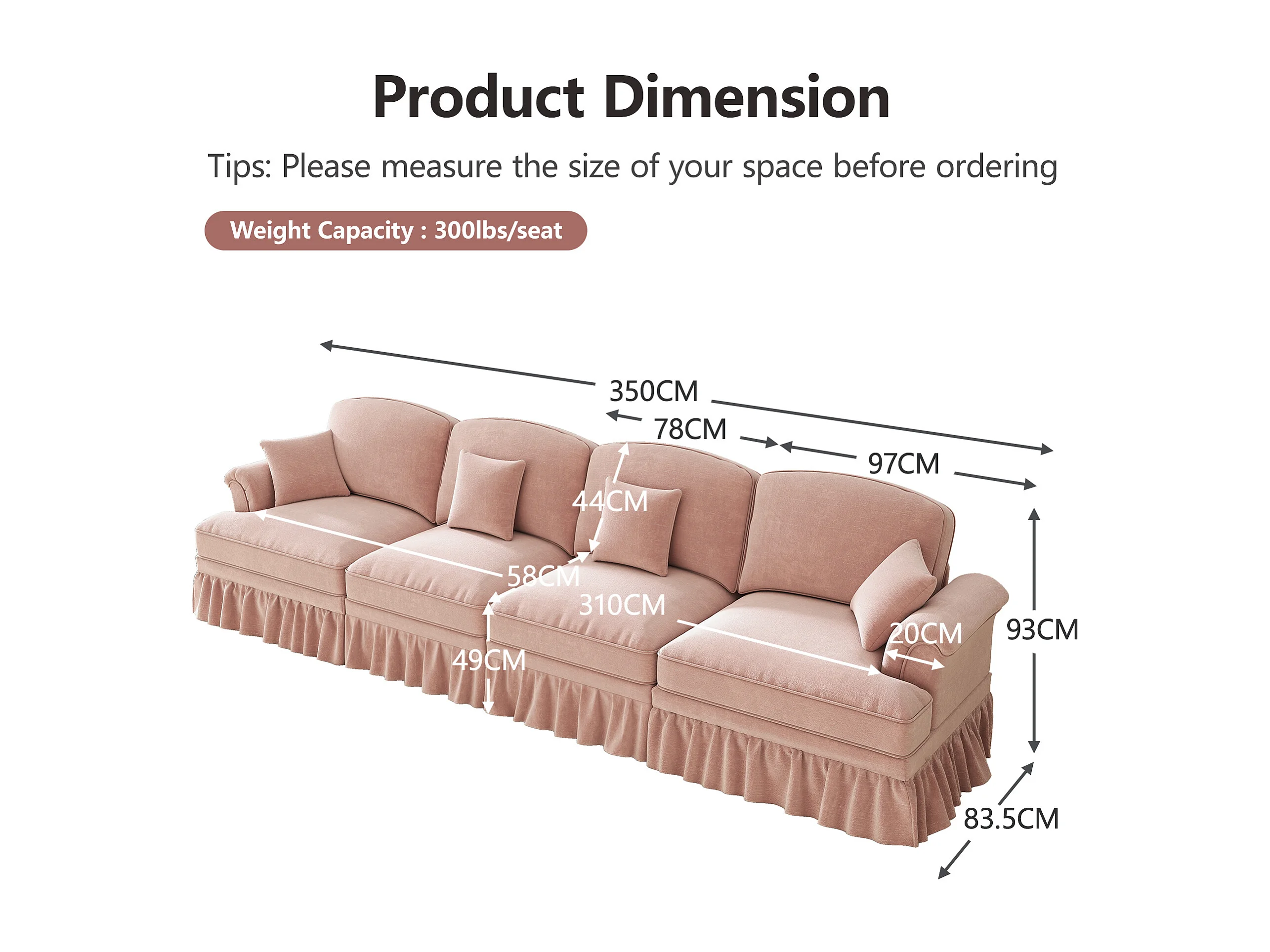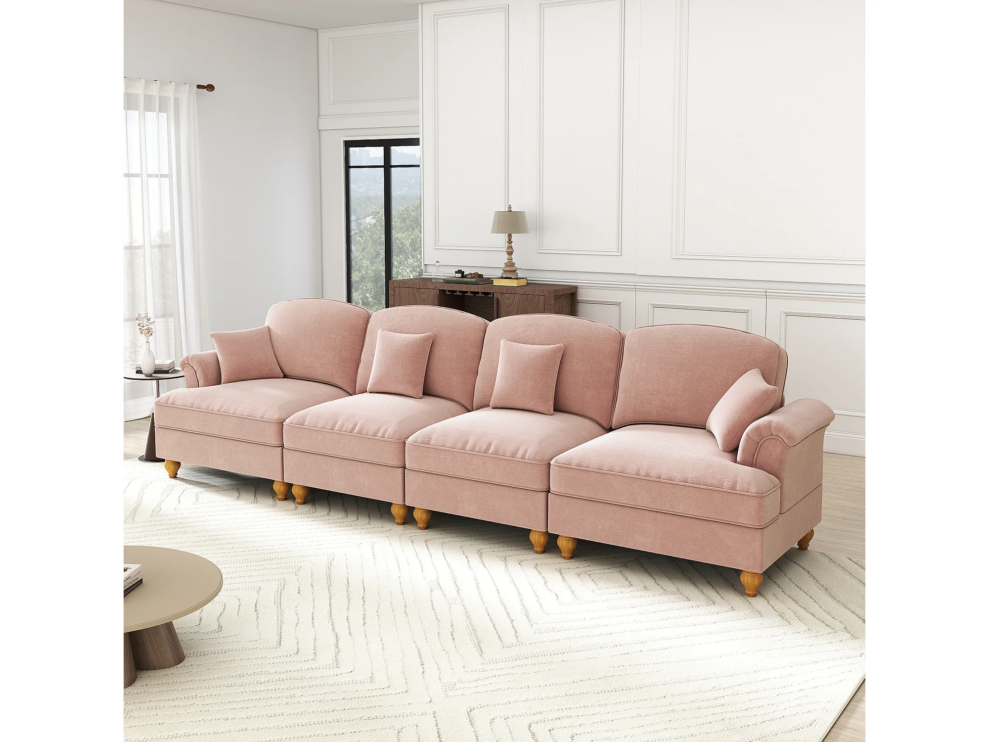 Canapé modulable, housses à volants amovibles, coussin mobile, chenille rose
