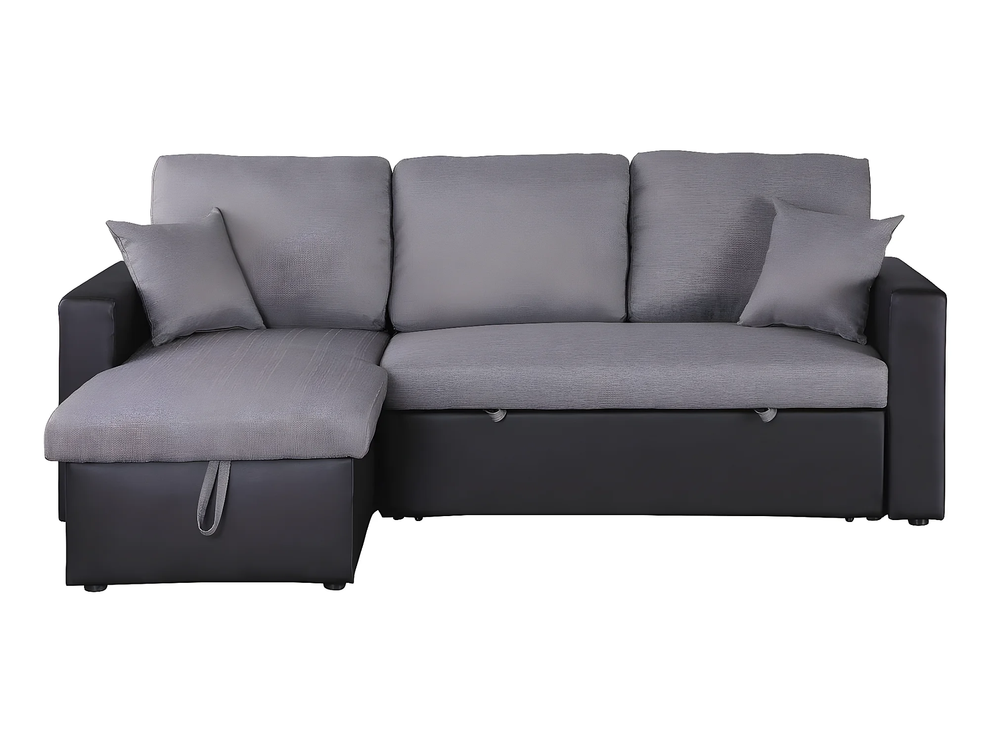Canapé d'angle convertible/ réversible avec coffre "Alain" - 3 places - Gris / Noir