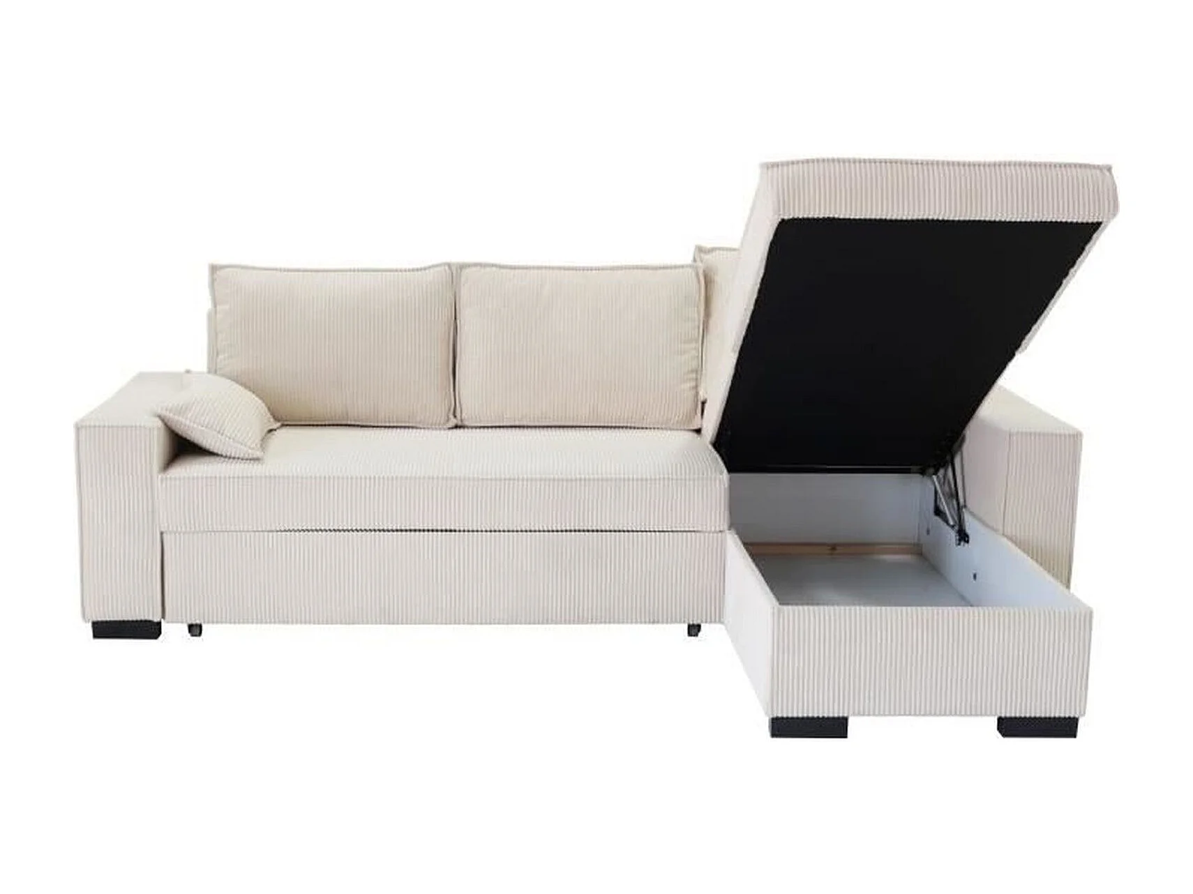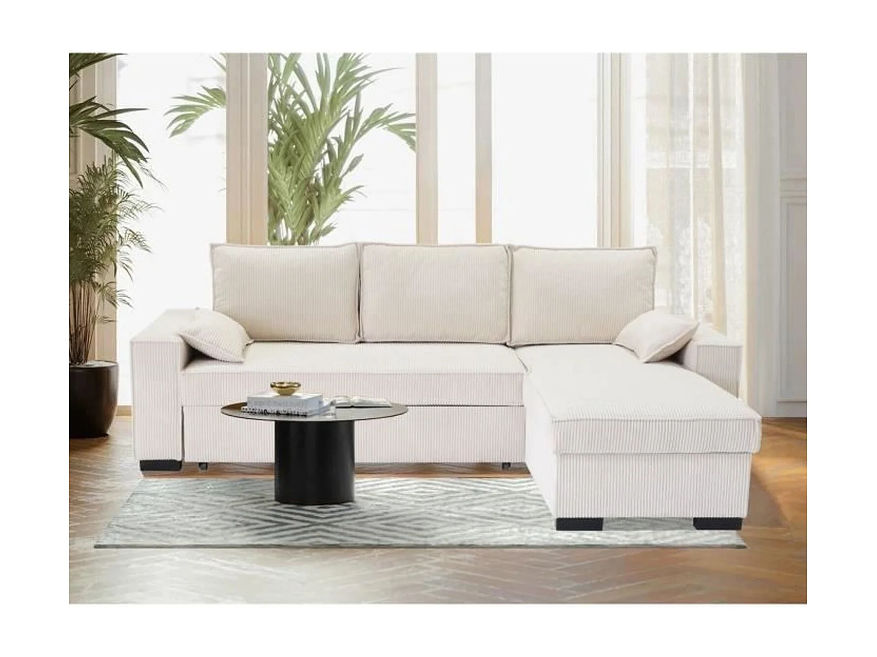 Canapé d'angle convertible réversible MARLON - Méridienne avec coffre - Velours côtelé 240 x 143 x 85 cm