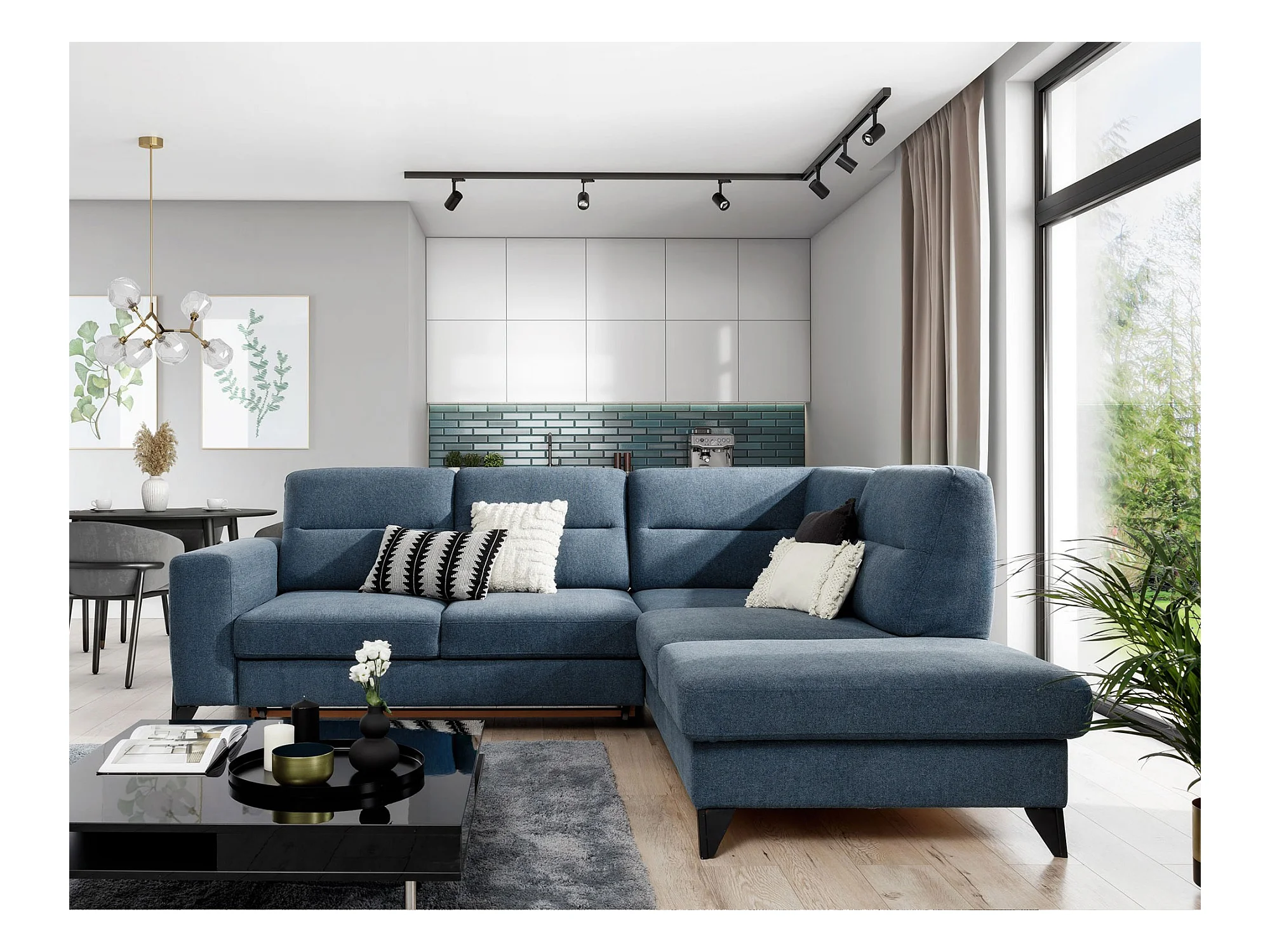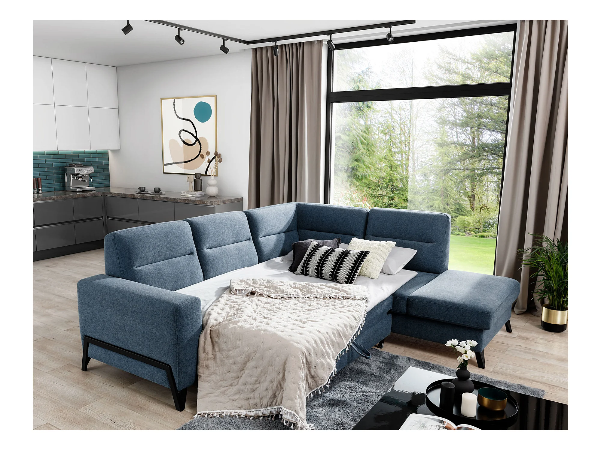 Canapé angle droit convertible tissu vert d'eau et pieds acier noir Kassidi 277cm