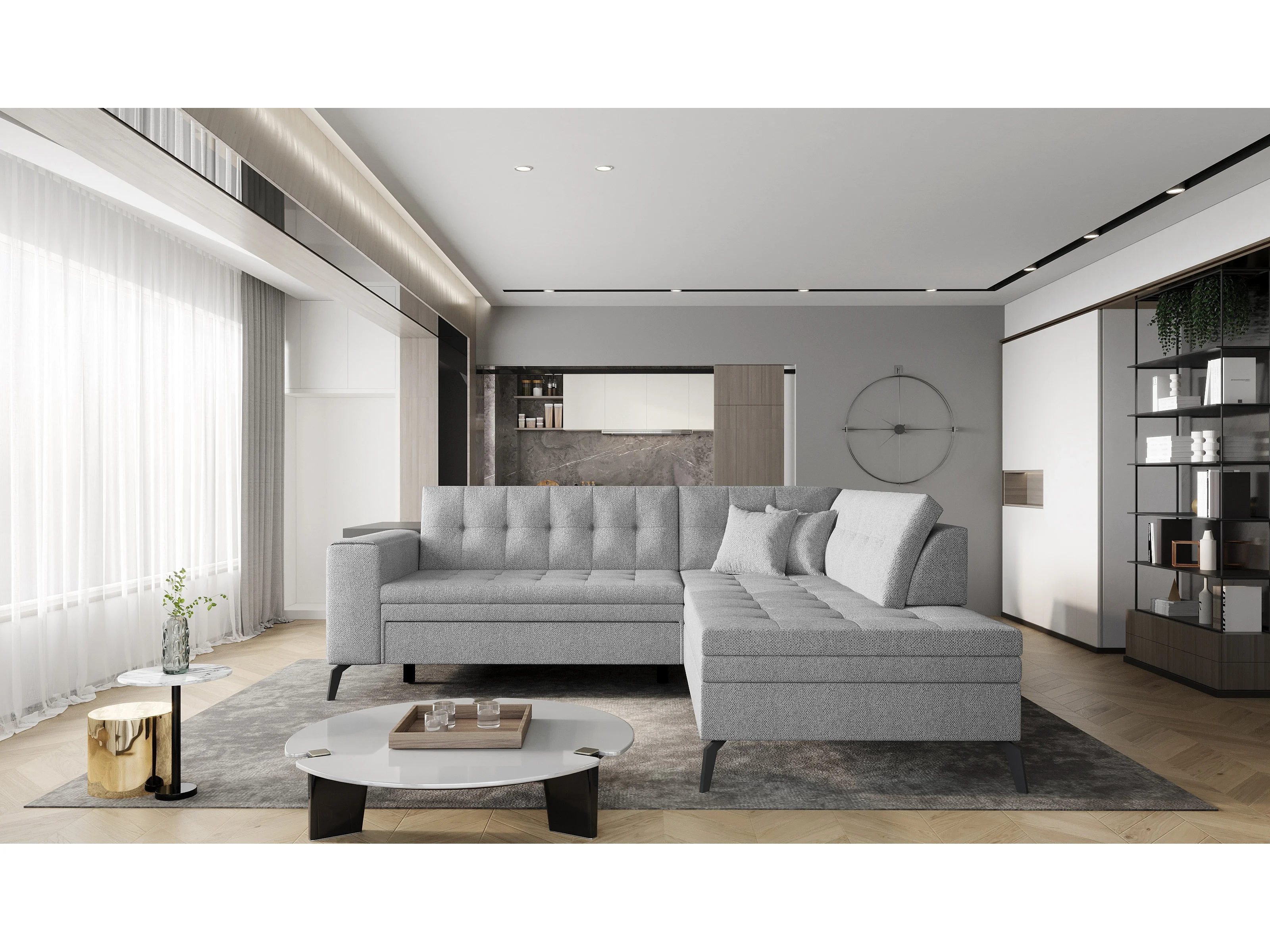 Canapé d'angle convertible tissu LARRY - Pieds acier noir-Gris clair-angle gauche