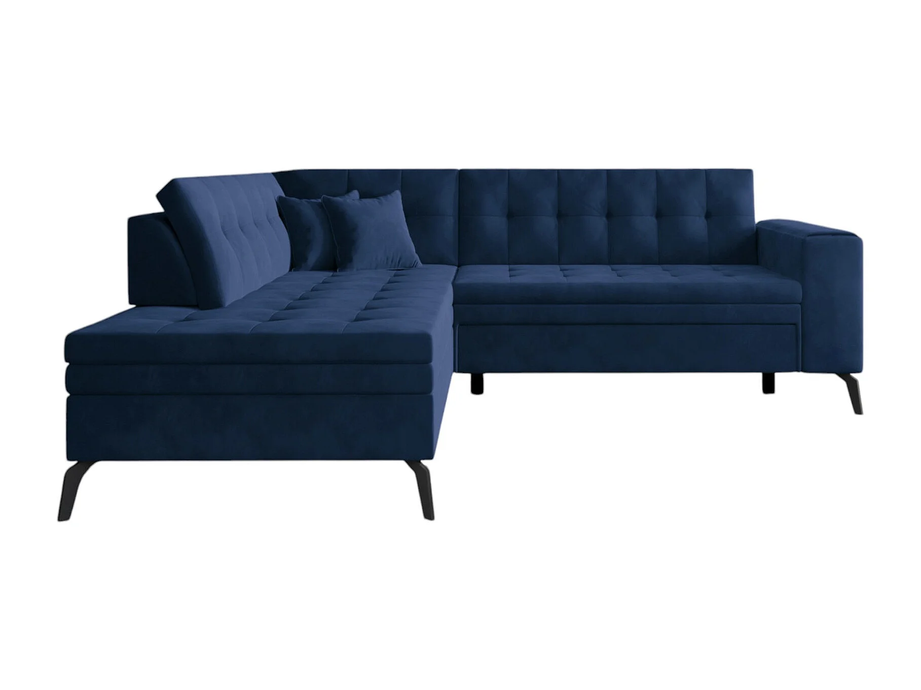 Canapé d'angle convertible velours têtière réglables GRENKY - Coffre, pieds acier chromé-Gris taupe-angle droit