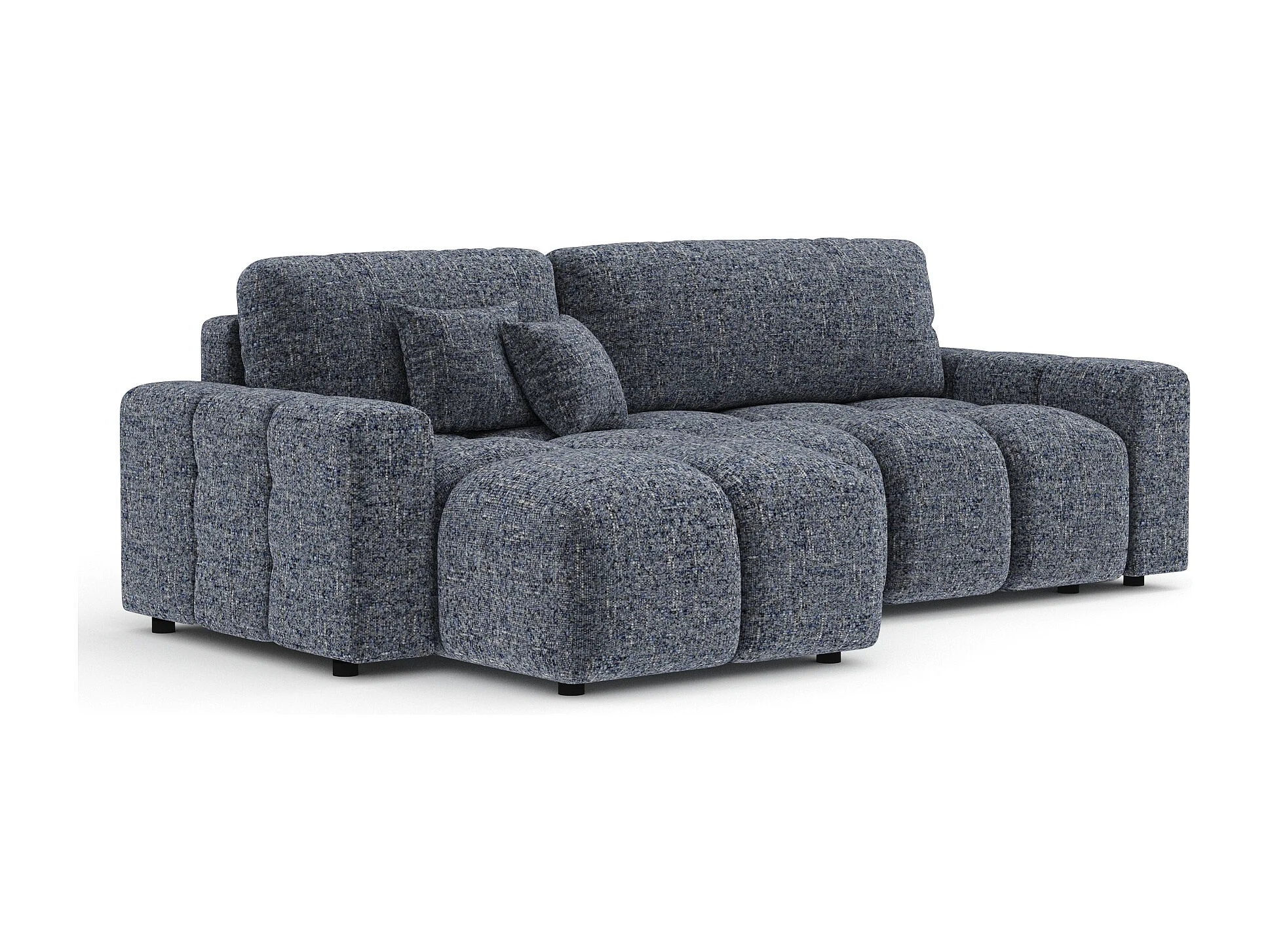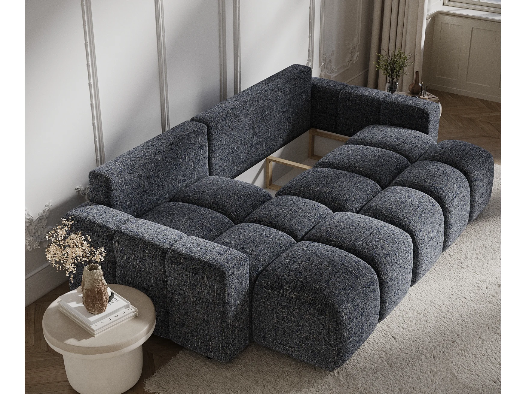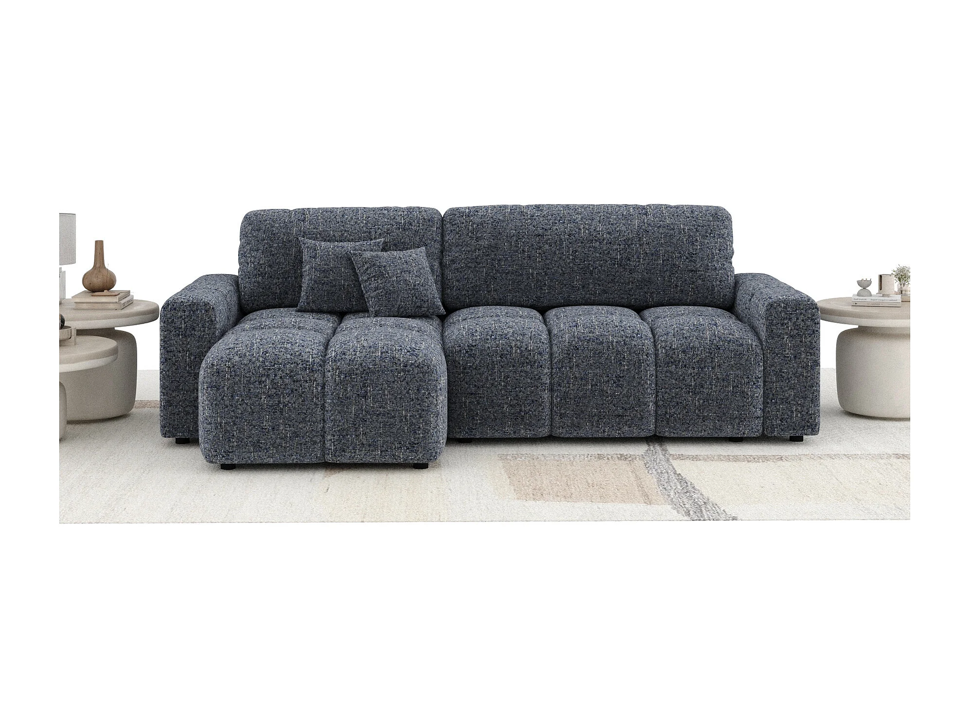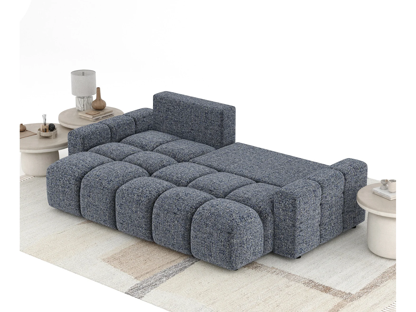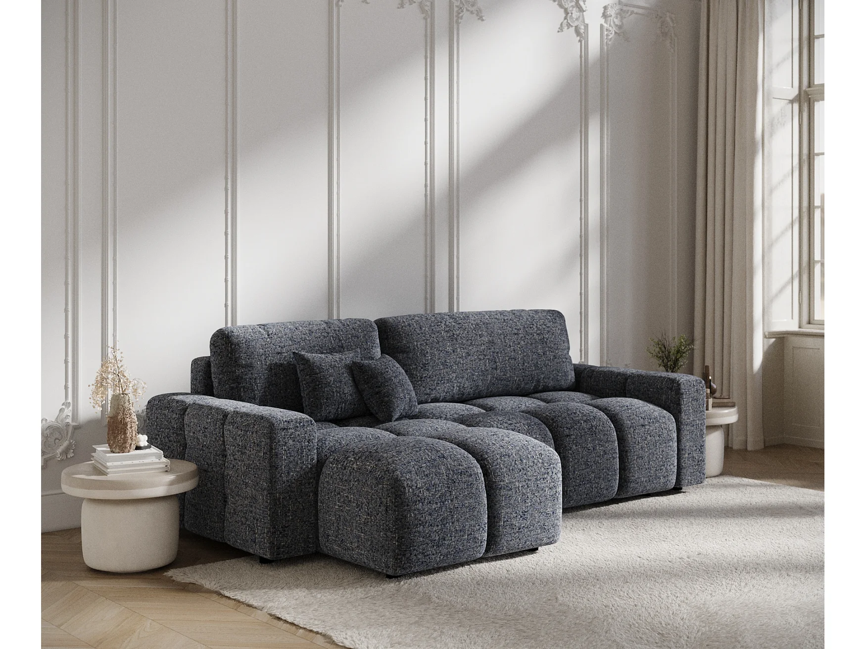 Canapé d'angle droit convertible en tissu texturé bleu DAVISO