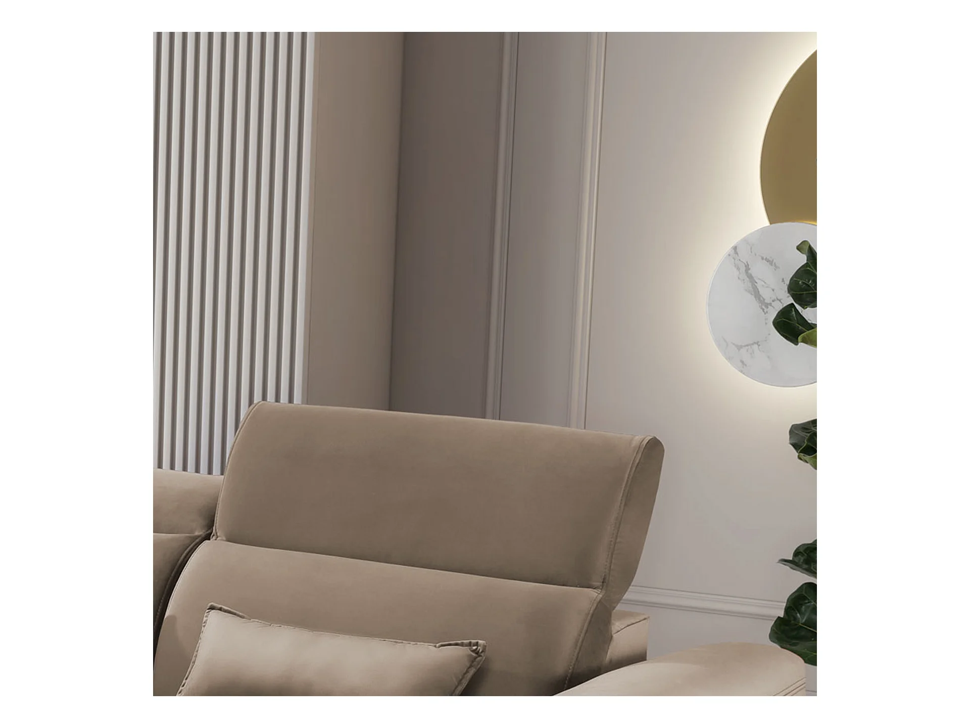 Canapé d’angle convertible velours appuis-tête réglables KATE – Coffre et pieds métal noir-Beige-angle droit