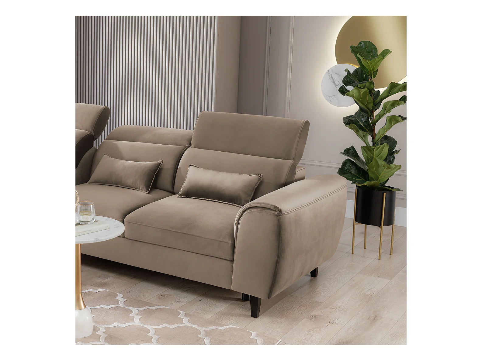 Canapé d’angle convertible velours appuis-tête réglables KATE – Coffre et pieds métal noir-Beige-angle gauche