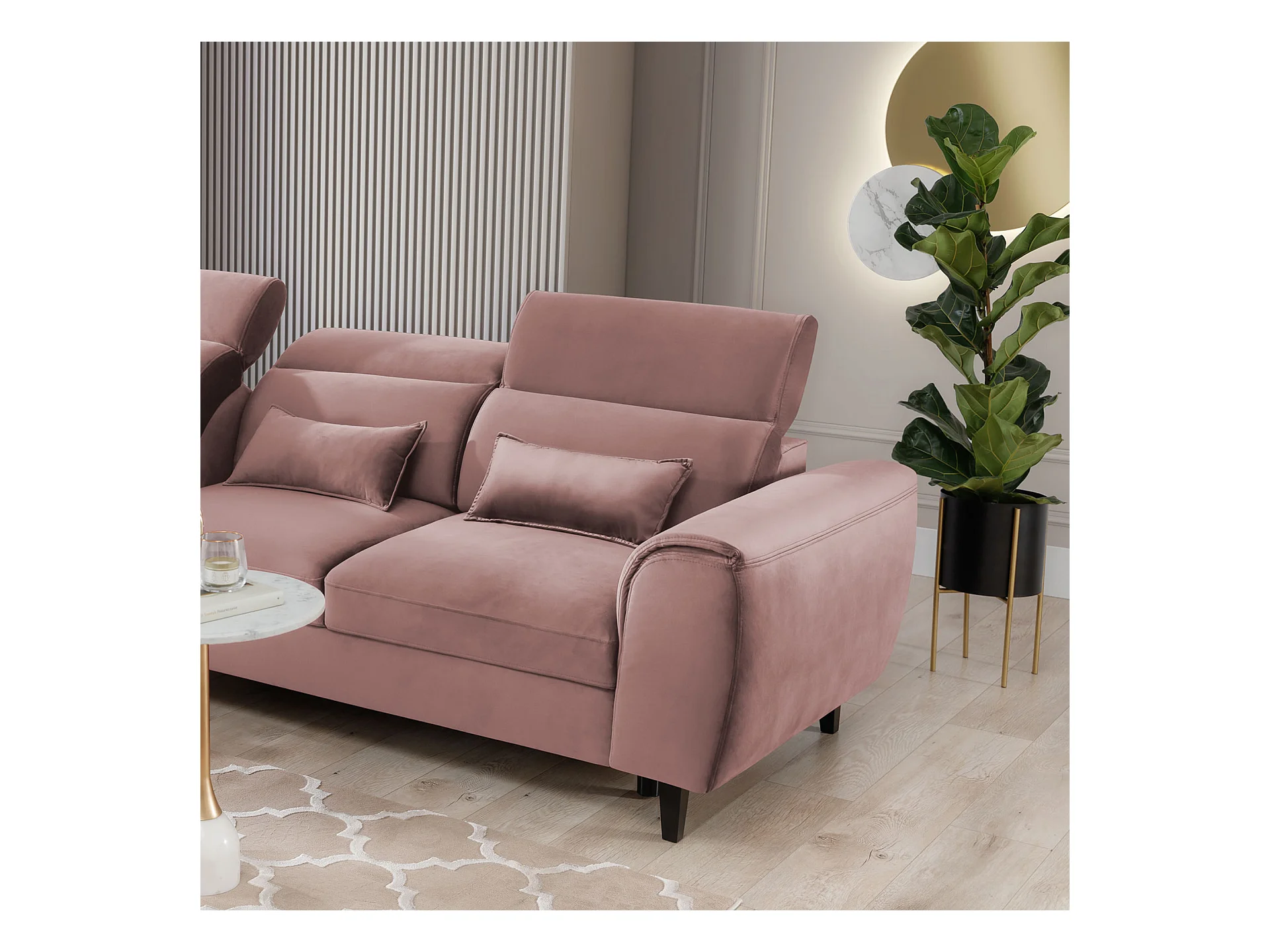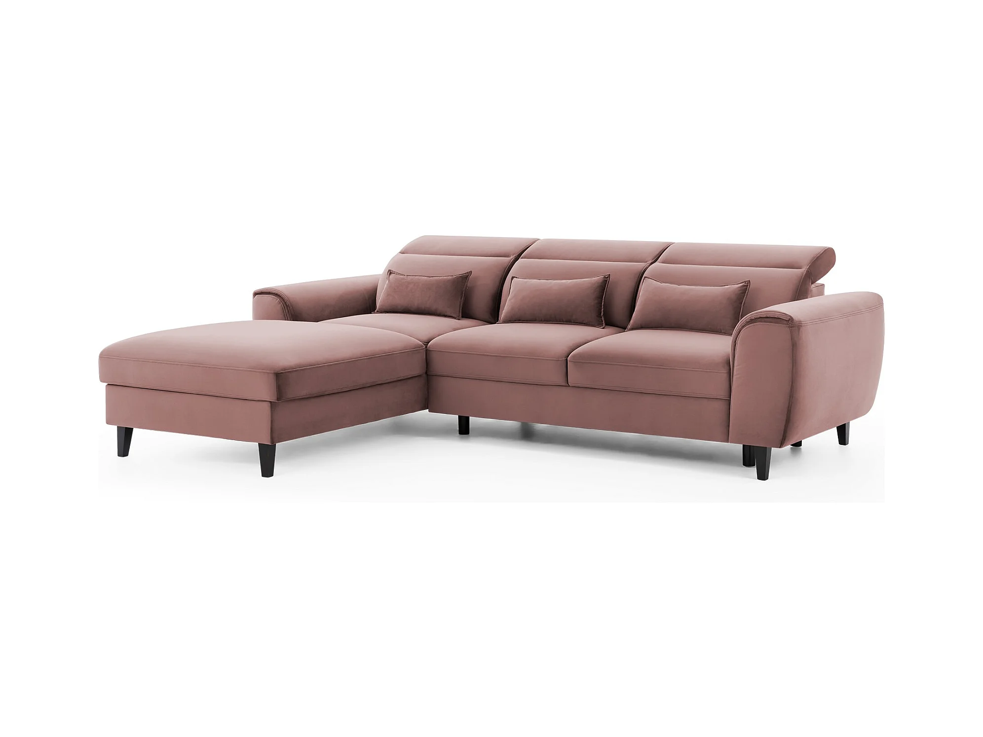 Canapé d'angle convertible velours appuis-tête réglables ASTORIA - Coffre et pieds bois noir-Rose clair-angle gauche