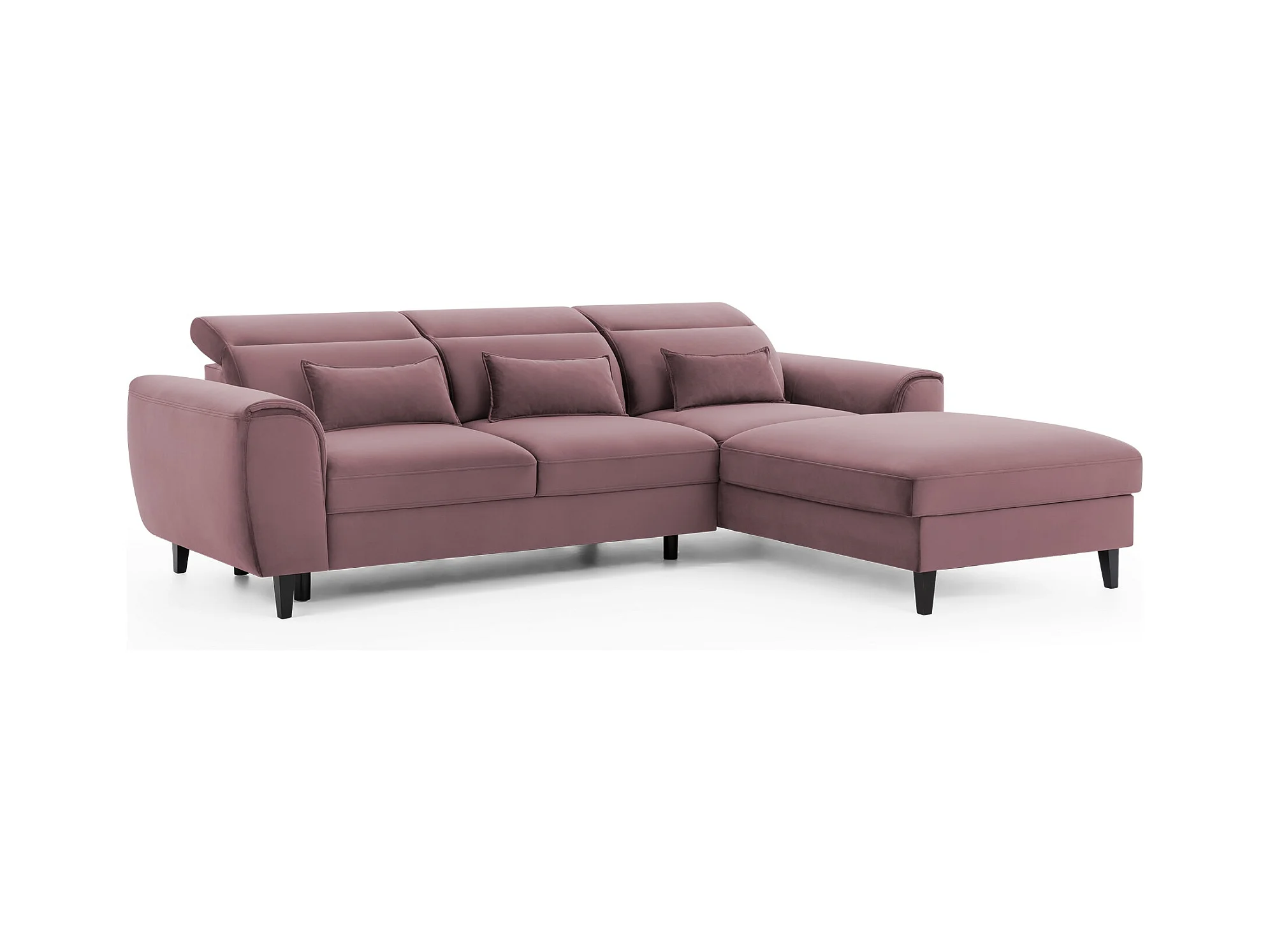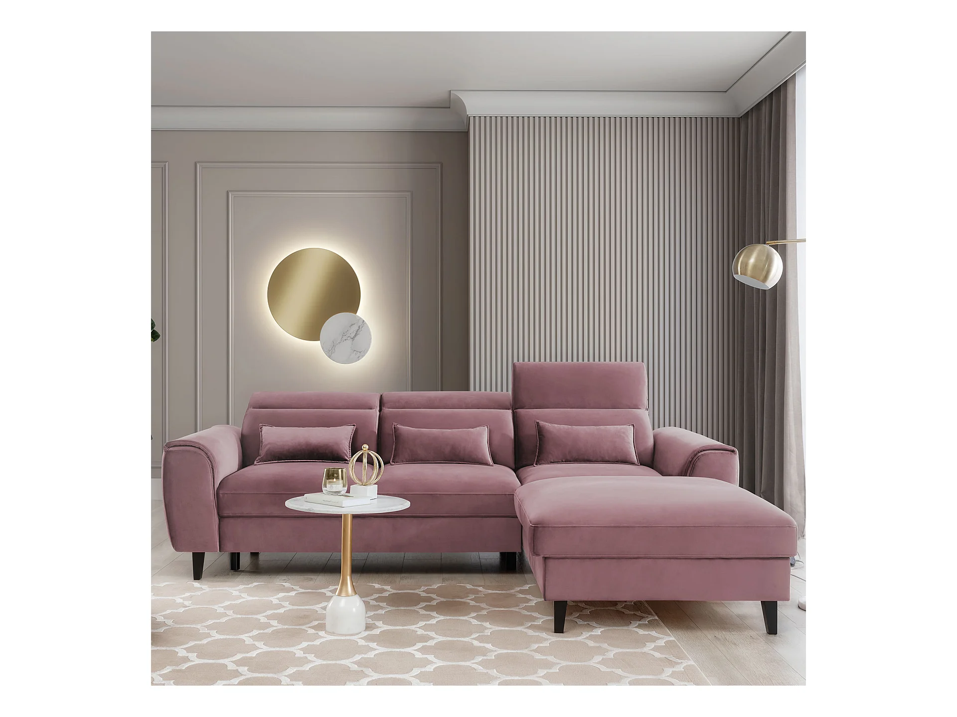 Canapé d'angle convertible velours appuis-tête réglables ASTORIA - Coffre et pieds bois noir-Rose clair-angle droit