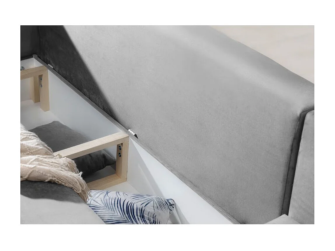 Canapé convertible panoramique TOVY velours - Rangement et têtières réglables-Gris/Gris clair-Coffre à gauche